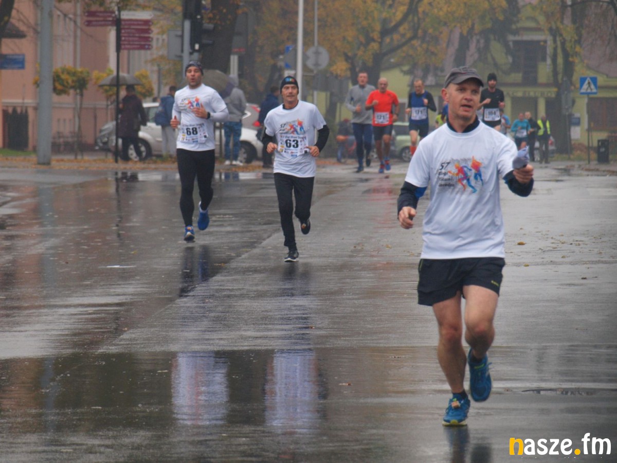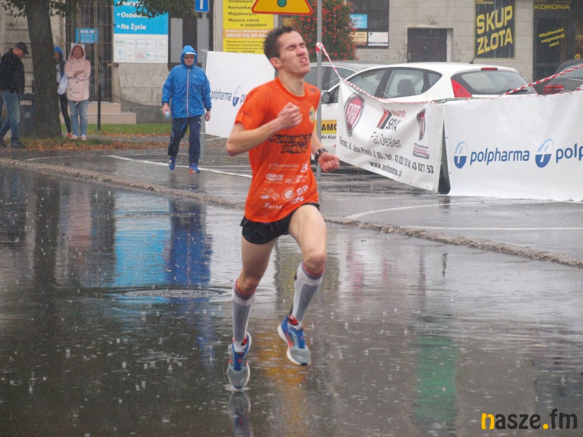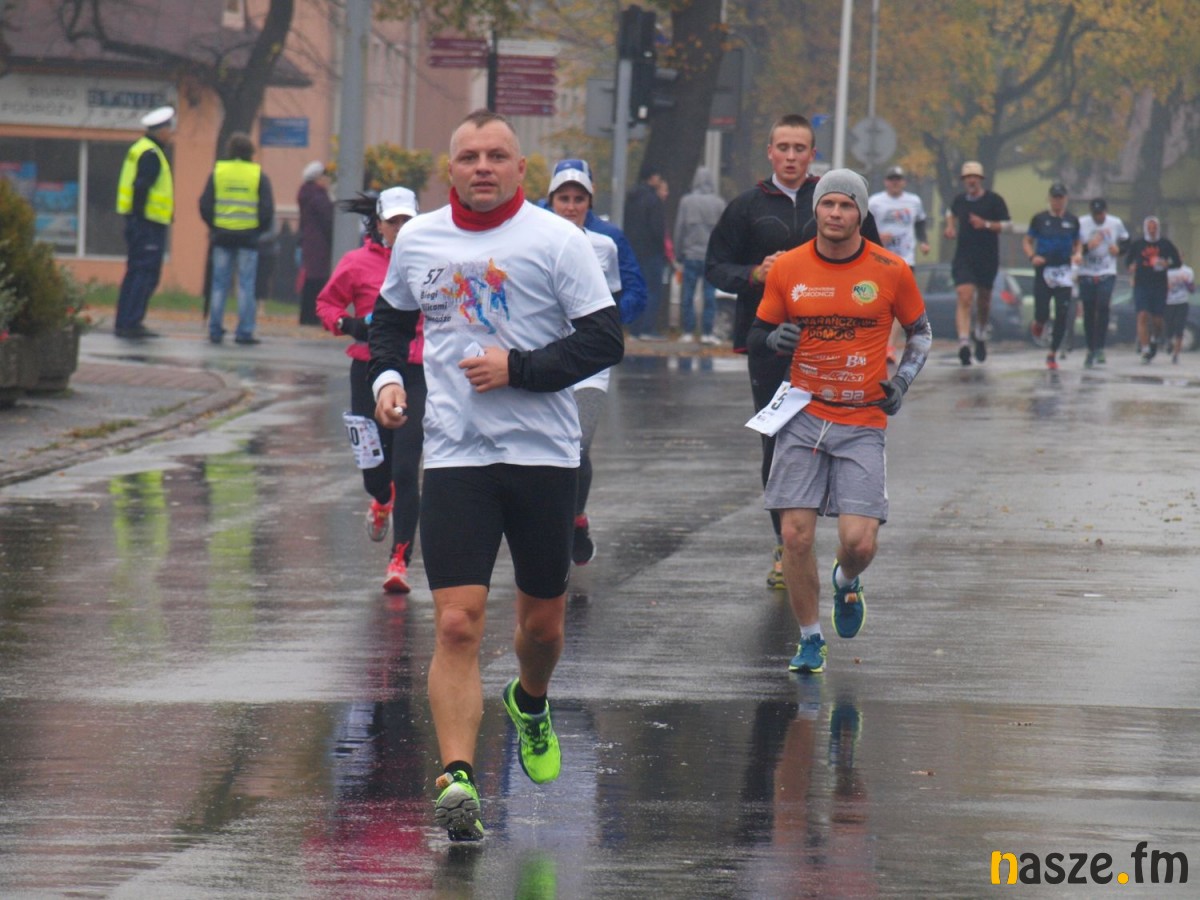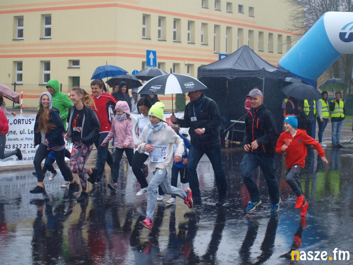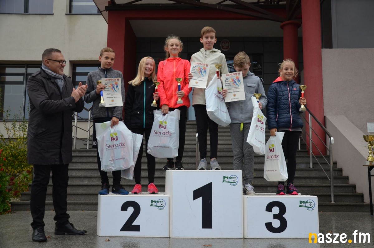 Pogoda nie rozpieszczała uczestników. Deszcz nie mógł jednak odstraszyć prawdziwych miłośników biegania. Jak zwykle największa liczba osób (266) wzięła udział w biegu głównym na dystansie 10 km. Najszybszy na dwóch pięciokilometrowych pętlach był dziś zawodnik RKS Łódź Patryk Stypułkowski, który tym samym poprawił swoje ubiegłoroczne osiągnięcie, przegrał wtedy ze swoim klubowym kolegą Tomaszem Osmulskim. Triumfator 57. edycji Biegów Ulicami Sieradza uzyskał czas 32:35 min, i wyprzedził drugiego na mecie Jędrzeja Hasiurę (także RKS) o blisko półtorej minuty. Jako trzeci linię mety minął wychowanek MULKS MOS Sieradz, obecnie także zawodnik RKS Maciej Nitka. Wśród pań najszybsza była dziś Ewelina Bartocha z Lisowa, która wynikiem 41:51 poprawiła rekord życiowy. Na podium w kategorii kobiet stanęły ponad to: Magdalena Włodarczyk (Wieluń Biega) i Arleta Matysiak (RajSport Active).