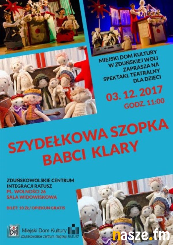 "Szydełkową szkopkę Babci Klary" będzie można zobaczyć w 3 grudnia. Bilety w cenie 10 zł (opiekun gratis) są do nabycia w kasie Ratusza.
