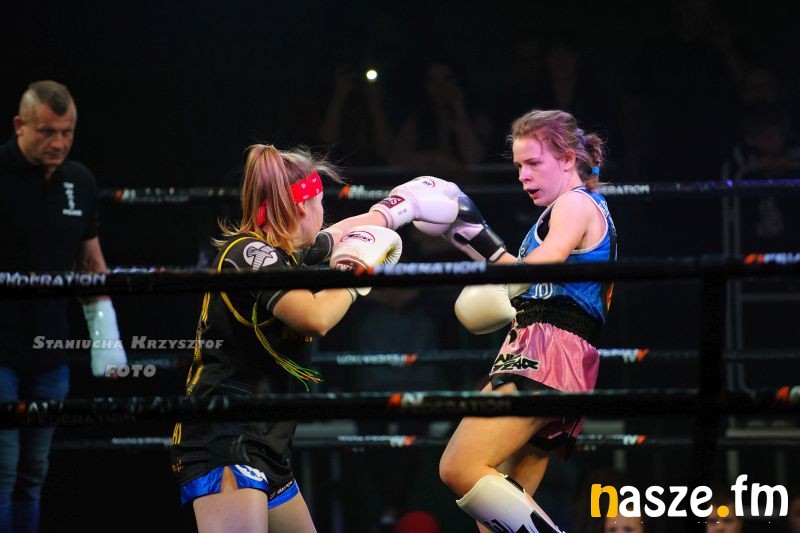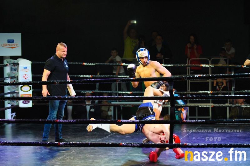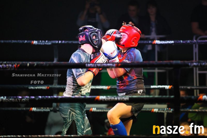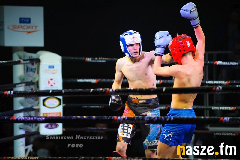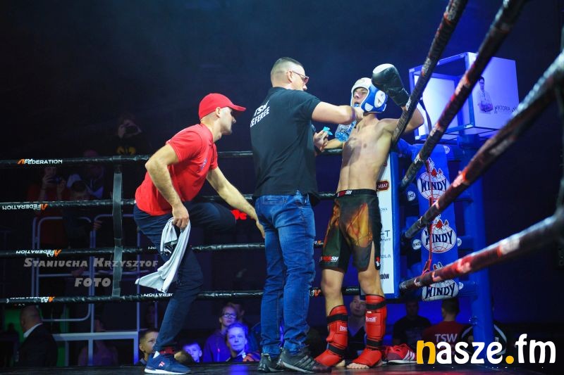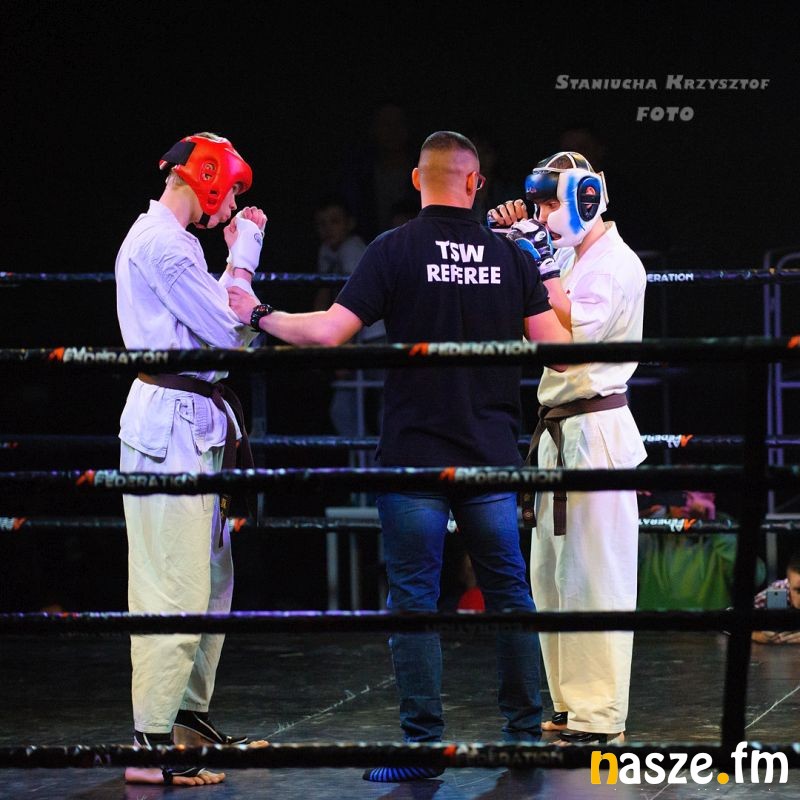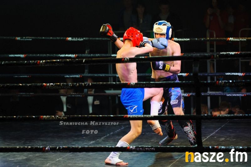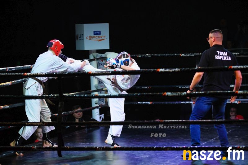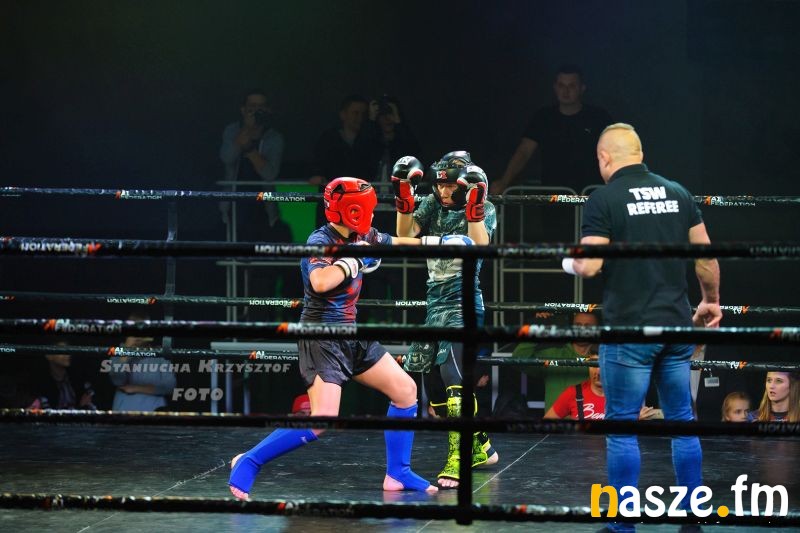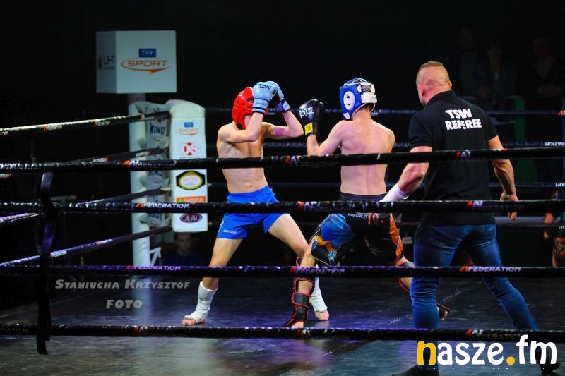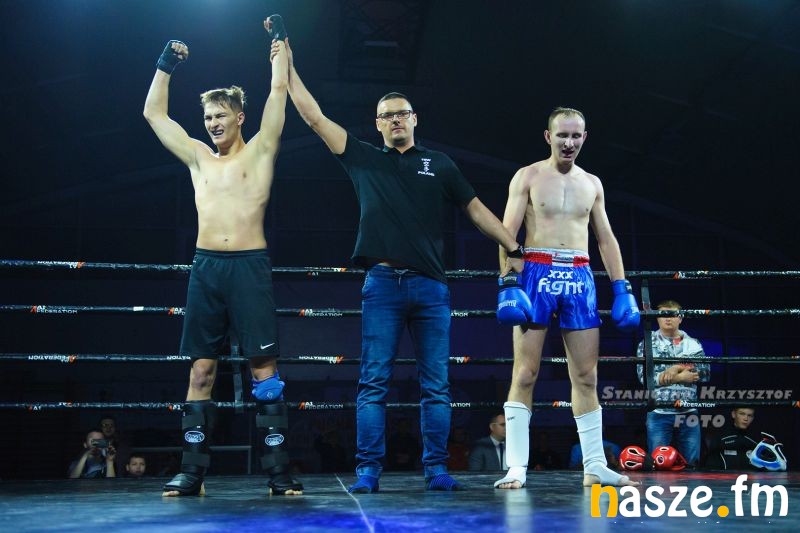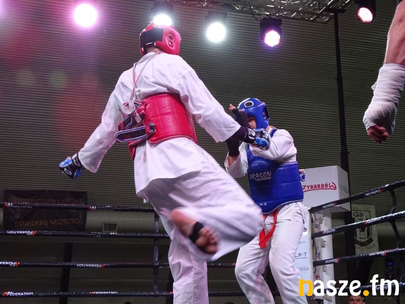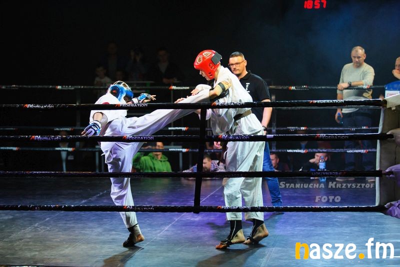 - Impreza na przyzwoitym poziomie, gdzie zawodnicy rywalizowali w kilku formułach: grapplingu, karate czy K1. Od rana na ringu trwały walki eliminacyjne, natomiast wieczorem odbyły się walki pokazowe i finałowe. Zawodnicy mogli poczuć na własnej skórze jak wychodzi się do profesjonalnej walki przy oświetleniu, muzyce i całej tej oprawie, dokładnie tak jak na profesjonalnej gali - podkreśla Piotr Bąk jeden z organizatorów.