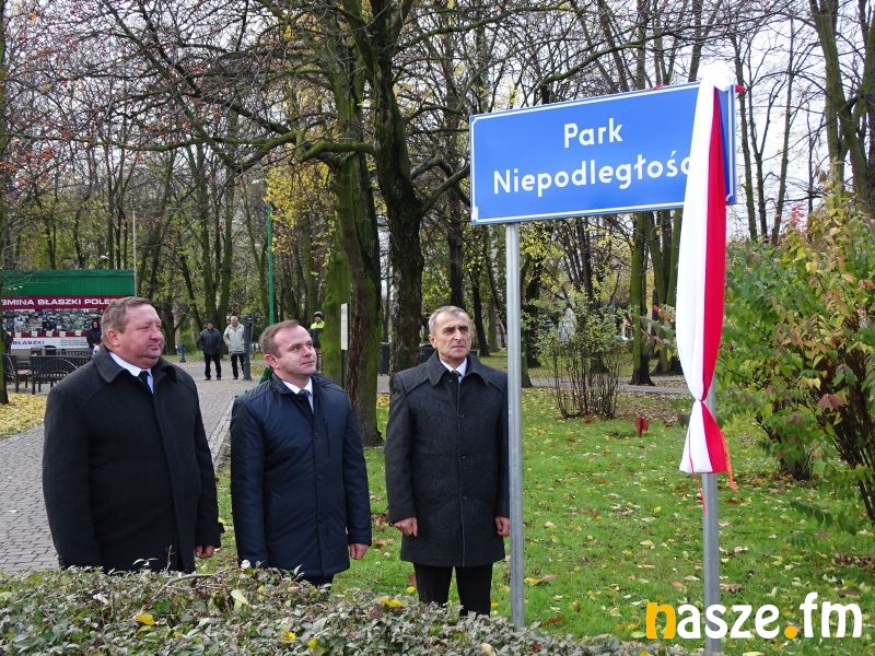 Święto Niepodległości było dziś doskonałą okazją, by oficjalnie ogłosić nową nazwę parku w Błaszkach przy placu Niepodległości. Burmistrz z radnymi odsłonili tablicę Park Niepodległości.