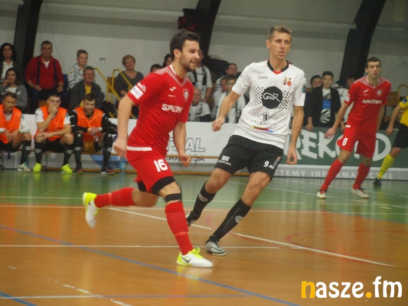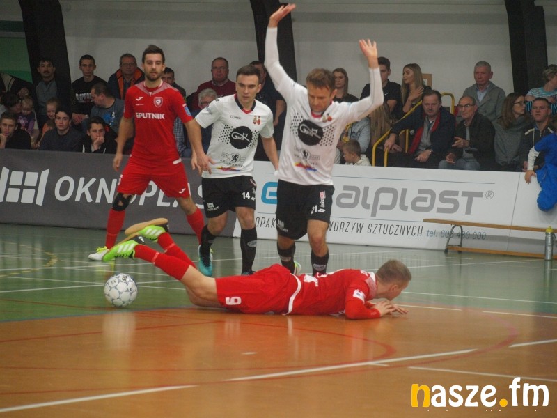 Sobalczyk i gospodarze objęli prowadzenie. Gra zduńskowolan mogła się podobać, gospodarze długo utrzymywali się przy piłce, szybko wymieniali podania, a po stracie podchodzili wysoko do graczy z Pniew. Ci drudzy też mieli swoje okazje, ale w bramce czujny był powracający do składu po chorobie Dariusz Słowiński. Na przerwę wicemistrzowie Polski schodzili z dwubramkowym prowadzeniem, a swoją drugą bramkę strzelił w 19. minucie Sobalczyk, tym razem po klepce z Michałem Marciniakiem.