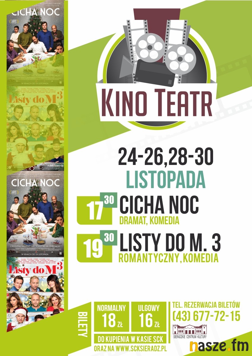 Od 24-26 oraz od 28-30 listopada w Teatrze Miejskim w Sieradzu wyświetlane będą "Listy do M.3" oraz debiut fabularny Piotra Domalewskiego "Cicha noc".