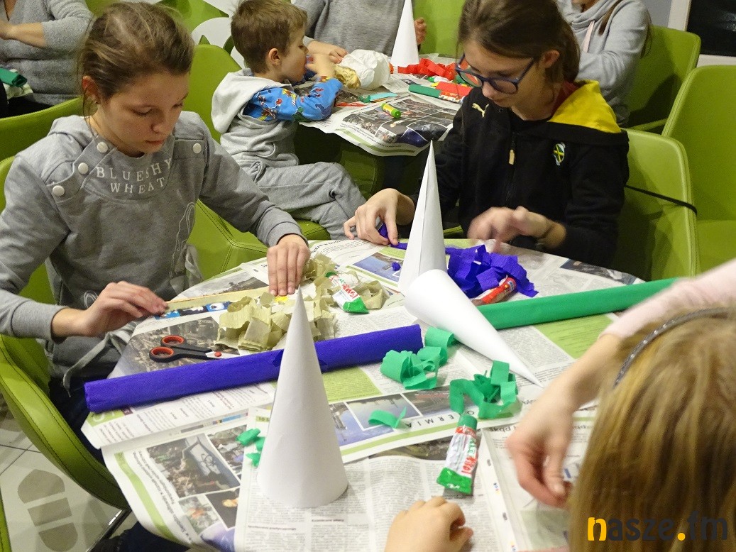 W warsztatach wzięły udział dzieci od 3 do 12 lat. Najmłodszym towarzyszyli opiekunowie, którzy również wykonywali swoje choinki.