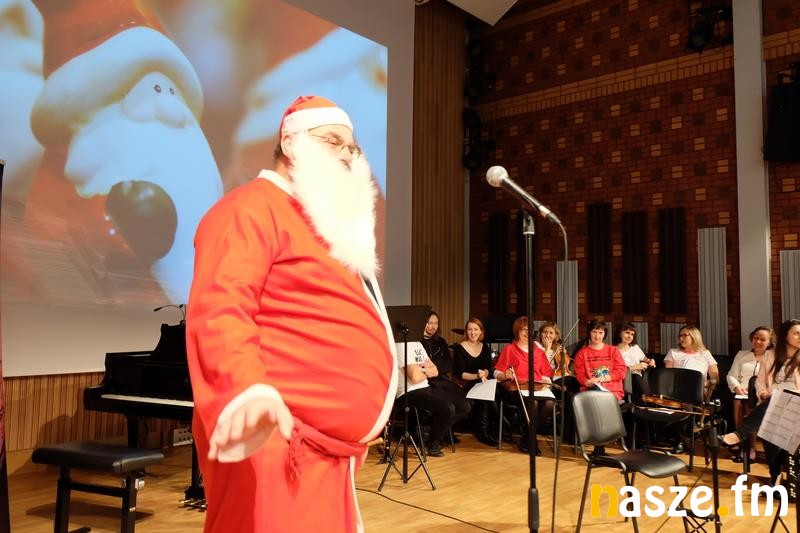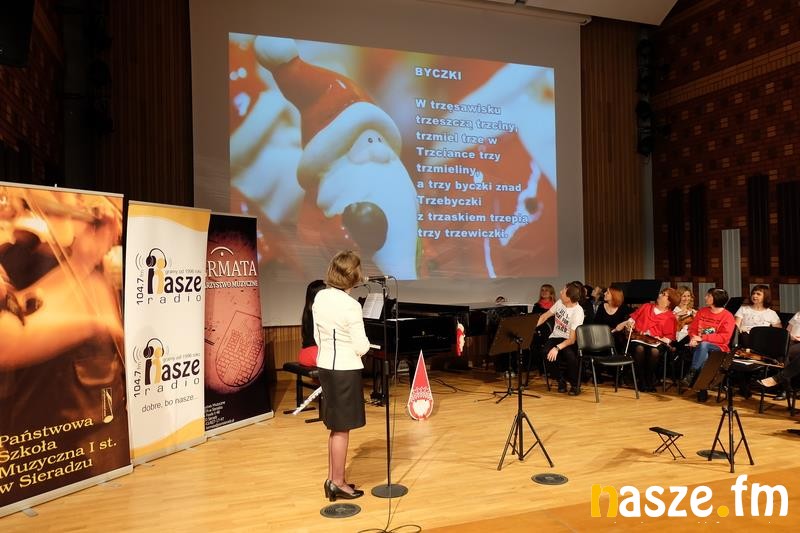 - Koncert rozpoczął się od wizyty Świętego Mikołaja, który wspomagany przez Śnieżynkę poczęstował dzieci słodyczami. Niespodzianki zostały również przygotowane dla nauczycieli. Każdy z występujących pedagogów oprócz wykonania utworu zamieszczonego w programie nauczania swojego podopiecznego, miał za zadanie odczytanie "łamańca językowego". Zawiłościom języka polskiego została również poddana nauczycielka akordeonu, Sylvia Csefalvayova pochodząca ze Słowacji. Bez problemu poradziła sobie z tekstem „Czarny dzięcioł z chęcią pień ciął.” Odwdzięczyła się słowackim "stołem z powyłamywanymi nogami", czyli " strč prst skrz krk", co w wolnym tłumaczeniu znaczy "wsadź palec w gardło". Polegliśmy - relacjonuje Sławomir Cieślak, wicedyrektor PSM I st. w Sieradzu.