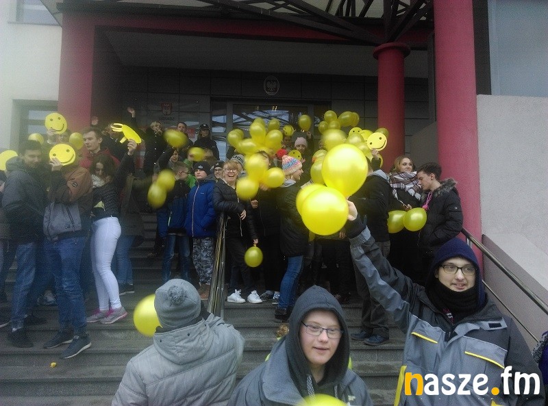 W południe grupa młodych ludzi zgromadziła się z żółtymi balonikami w dłoniach i uśmiechniętymi maskami przed magistratem. Na dany znak wszyscy symbolicznie pomachali krótko balonikami życząc w ten sposób sobie nawzajem, ale i sieradzanom miłego dnia.