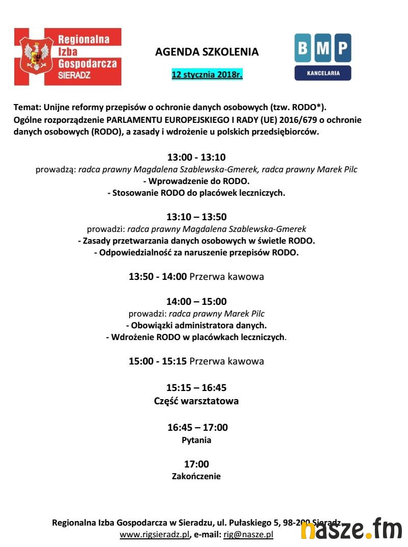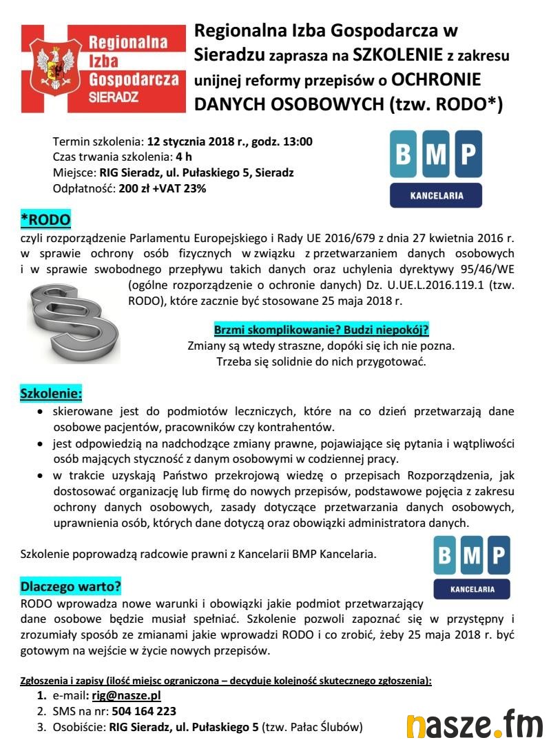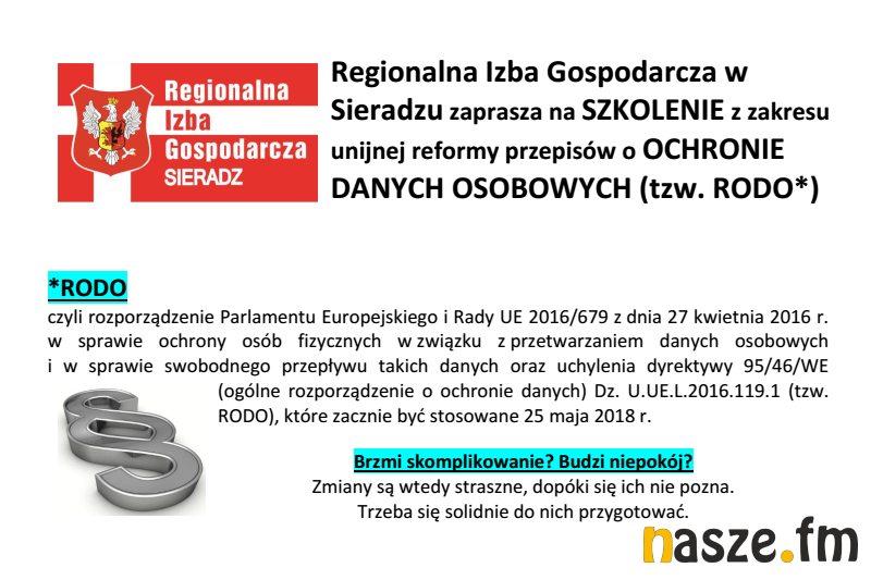 - Będzie to szkolenie dedykowane dla podmiotów leczniczych, które na co dzień przetwarzają dane osobowe pacjentów, pracowników czy kontrahentów. Osoba, która weźmie udział w tym szkoleniu uzyska informacje na temat zmieniającego się prawa, które wejdzie w życie od maja tego roku. Chodzi o ustawę o ochronie danych osobowych tzw. RODO. Podczas szkolenia zostaną przekazane szczegółowe informacje techniczne, które będą przydatne w codziennej pracy i analizie wszystkich spraw związanych z ochroną danych osobowych - mówi Sławomir Balcerzak, prezes Regionalnej Izby Gospodarczej w Sieradzu.