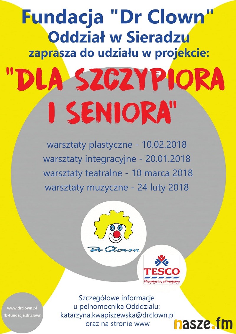 Sieradzki oddział Fundacji Dr Clown zaprasza seniorów, osoby z niepełnosprawnościami, dzieci z rodzin wielodzietnych bądź pozostających w trudnej sytuacji życiowej lub zdrowotnej oraz wolontariuszy "doktorów clownów" na uśmiechnięte warsztaty.