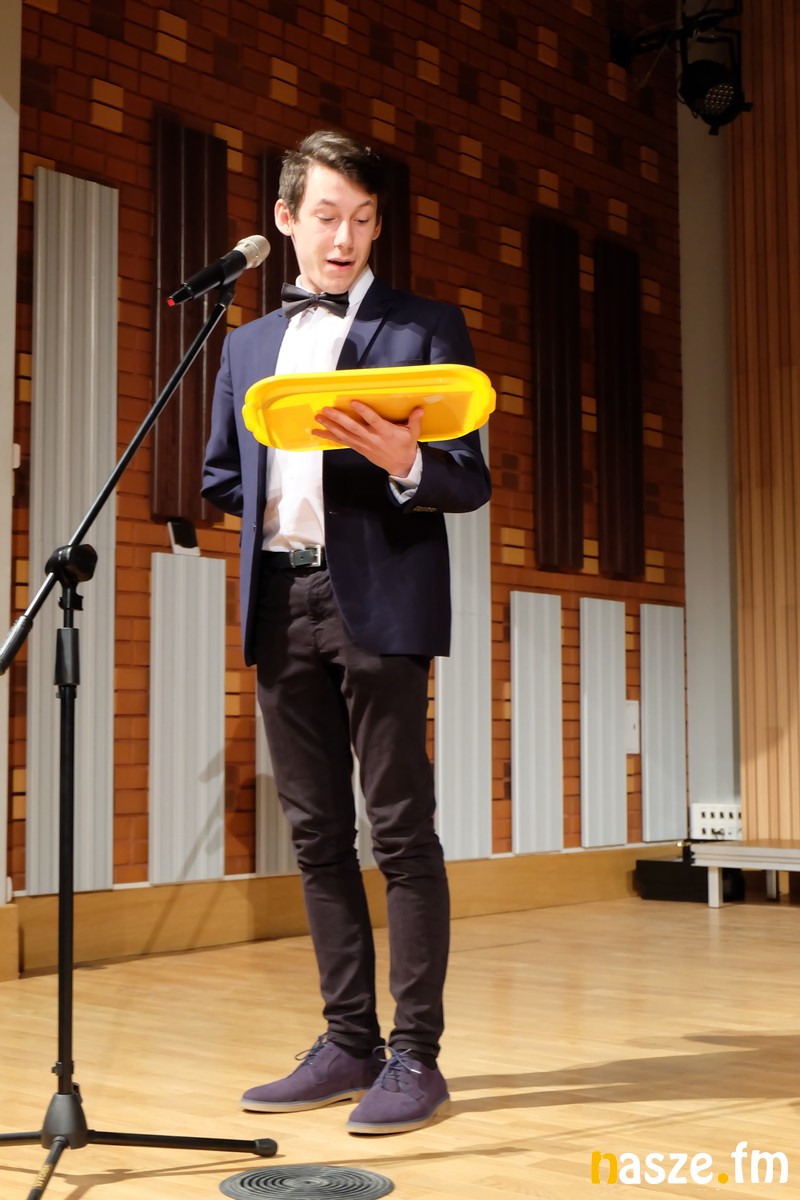 - Mam tutaj dwie książki. W pierwszej mamy odżywcze przepisy dla ciała, a w drugiej ożywcze przepisy dla ducha. Wszyscy doskonale wiedzą, że ta sama potrawa ugotowana przez mamę, przez babcię i powiedzmy przez ciocię smakuję zupełnie inaczej. A należy przypuszczać, że panie korzystają z tego samego rodzinnego przepisu. Podobnie jest w muzyce. Korzystamy z tych samych nut, a utwór zagrany przez Kasię, Basię czy Olę brzmi zupełnie inaczej. Znacie Państwo taką sytuację, kiedy gospodyni gotuje któryś raz z rzędu tę samą potrawę, według tego samego przepisu i za każdym razem smakuje trochę inaczej? A przecież w muzyce jest dokładnie tak samo. Ten sam utwór zagrany przez tego samego wykonawcę, w tej samej sali, na tym samym instrumencie potrafi zabrzmieć bardzo różnie. Aby przyrządzić smaczną potrawę trzeba trzymać się przepisu. Trzeba dodać odpowiednie składniki, w odpowiednich proporcjach, doprawić do smaku....Czy widzicie Państwo podobieństwo do muzyki? Przecież musimy zgodnie z przepisem zagrać odpowiednie nuty, w odpowiednim rytmie i doprawić do smaku tempem, artykulacją, dynamiką.....Ktoś lubi słodką herbatę, ale jeżeli przesadzi z cukrem, to nawet najlepszy gatunek herbaty nie będzie smaczny. Muzykom również zdarza się przesadzić np. z tempem....A co jeżeli nie osłodzimy w ogóle herbaty? To tak jakby muzyk zapomniał o dynamice....Da się wypić, ale to nie to – tymi słowami wczorajszy koncert z cyklu Scena Dla Młodych rozpoczął Sławomir Cieślak.