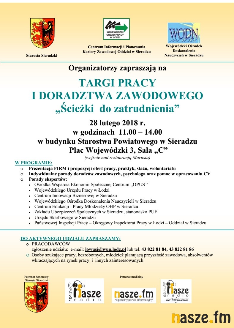 Targi już 28 lutego w godzinach 11:00 - 14:00 w sali C budynku Starostwa Powiatowego w Sieradzu.