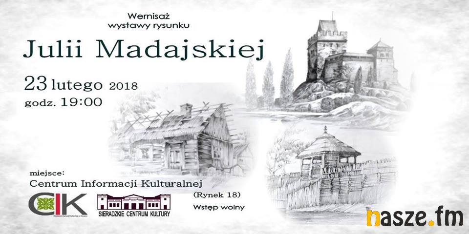 Wernisaż wystawy rysunków Julii Madajskiej odbędzie się 23 lutego 2018 roku o godzinie 19:00 w Centrum Informacji Kulturalnej w Sieradzu.