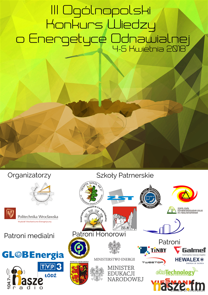 Zakończyły się etapy szkolne III Ogólnopolskiego Konkursu Wiedzy o Energetyce Odnawialnej, który jest organizowany przez Zespół Szkół Ponadgimnazjalnych Nr 1 w Sieradzu wraz z Wydziałem Mechaniczno-Energetycznym Politechniki Wrocławskie. Kto będzie reprezentował Sieradz w kolejnym etapie?