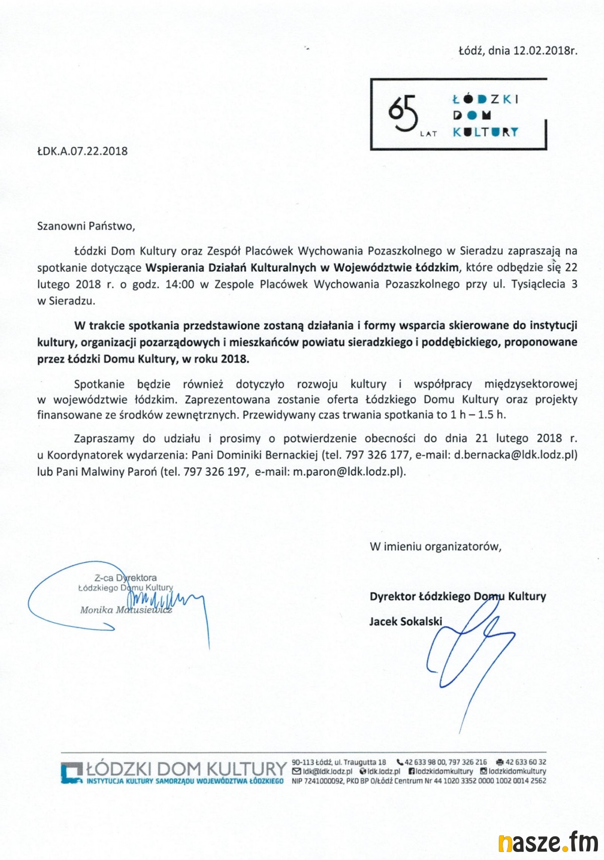 Łódzki Dom kultury organizuje w przyszłym tygodniu spotkanie adresowane do przedstawicieli instytucji kultury w powiecie sieradzkim. Odbędzie się ono w Zespole Placówek Wychowania Pozaszkolnego w Sieradzu, ul.Tysiąclecia 3. Początek o godz. 14:00.