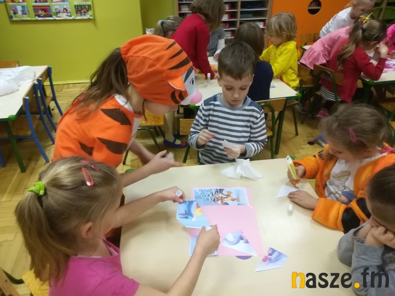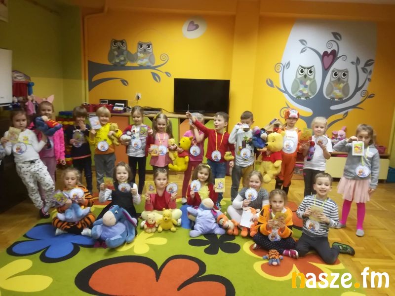 Dzieci powitała, zapoznała z zasadami zabawy i porozmawiała o postaciach Kubusia Puchatka dyrektor Beata Wójcik. Następnie dzieci musiały odszukać listu, który zostawił dla nich Kubuś Puchatek. Bohater wieczoru obiecał im, że czeka na nich wiele zadań i nagród oraz życzył udanej zabawy.