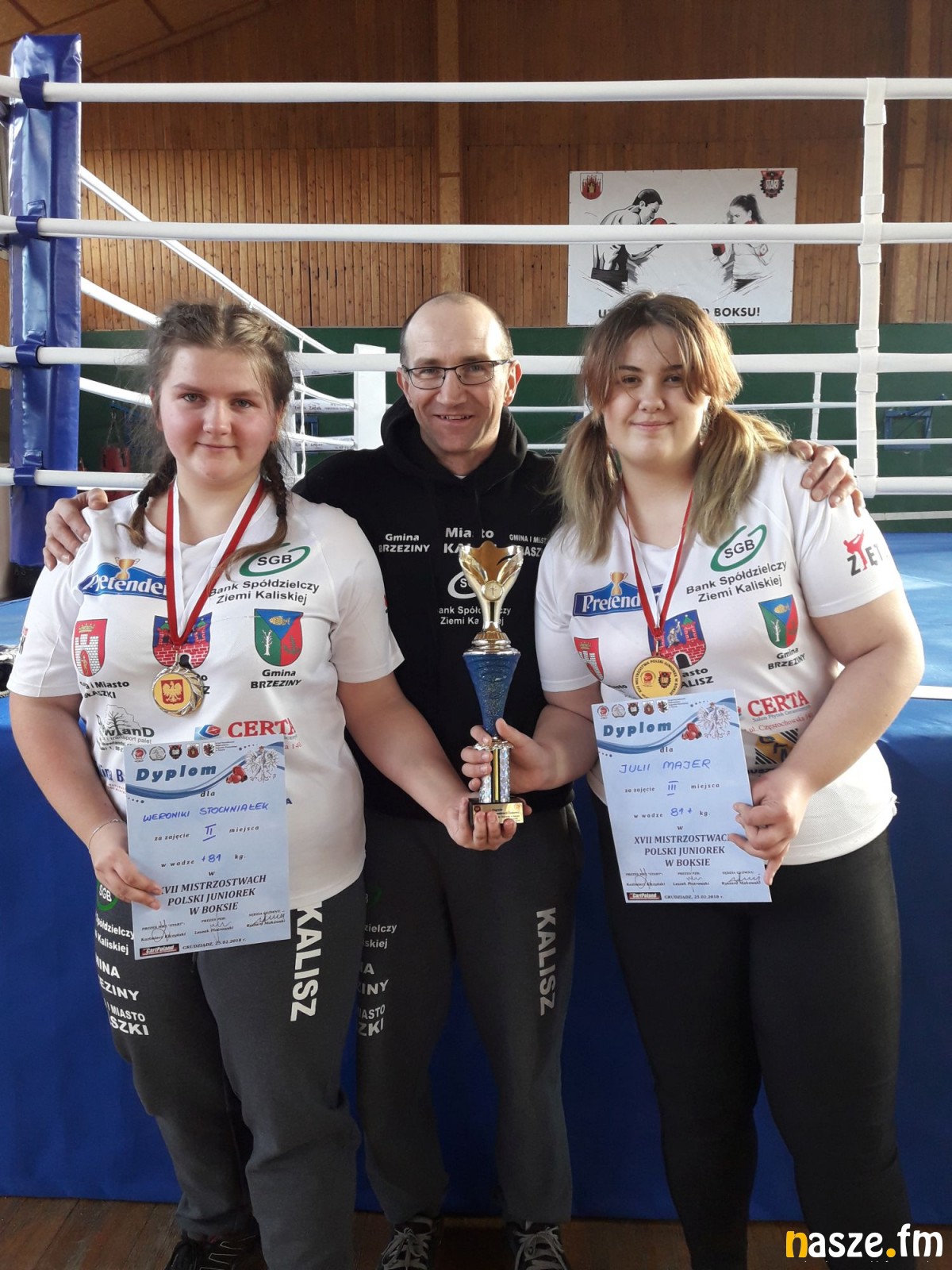 Weronika (na zdjęciu głównym pierwsza z lewej z trenerem Mariuszem Ziętkiem i klubową koleżanką Julią Majer) reprezentuje barwy Ziętek Team Kalisz, ale na co dzień może trenować w rodzinnych Brąszewicach, gdzie funkcjonuje jedna z sekcji (kolejna działa w Błaszkach). Podopieczna Mariusza Ziętka pierwszą walkę na mistrzostwach wygrała przed czasem z Darią Sobolewską (Skorpion Szczecin), w kolejnej wygrała z Wiktorią Stawicką (M&J KO Boxing Płońsk) 3:0, co zapewniło jej wejście do najlepszej czwórki zawodów i brązowy medal. Weronika Stochniałek w półfinale zmierzyła się z Natalią Olszewską (Pomorzanin Toruń), którą pokonała przez RSC w pierwszej rundzie. W walce finałowej nasza zawodniczka musiała jednak uznać wyższość Aleksandry Jońcy (BKS Skorpion Szczecin) przegrywając na punkty 0:5 i zdobywając tym samym srebrny medal w kat +81 kg.