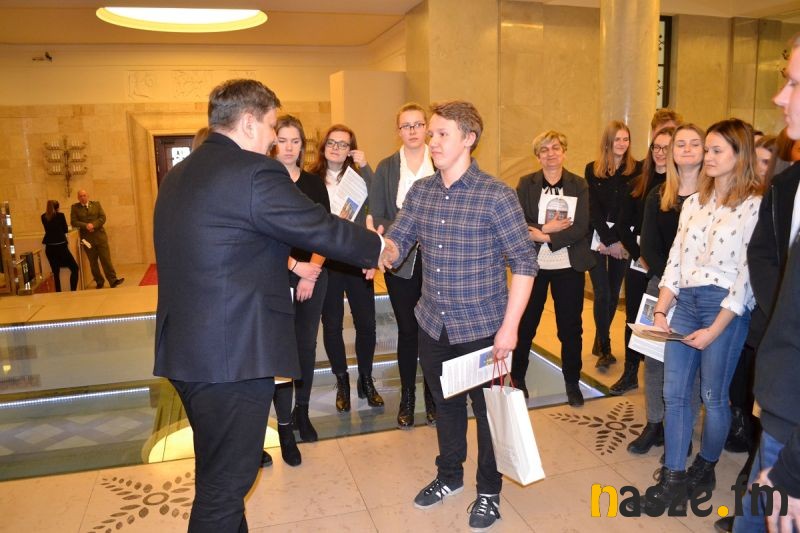 - Młodzież oprócz zwiedzania Gmachu Kancelarii Prezesa Rady Ministrów w tym sala kolumnowa, sala im. Andrzeja Frycza Modrzewskiego (sala posiedzeń Rady Ministrów), przeszklony hol przed dawnym gabinetem Premiera na I piętrze, zwiedziła także: Belweder (wystawę poświęconą Marszałkowi Józefowi Piłsudskiemu, salę historii Orderu Wojennego Virtuti Militari, Kaplicę Belwederską, wybrane sale historyczne oraz zrekonstruowany Gabinet Marszałka Piłsudskiego) -powiedział Dawid Mazurkiewicz, dyrektor biura poselskiego.