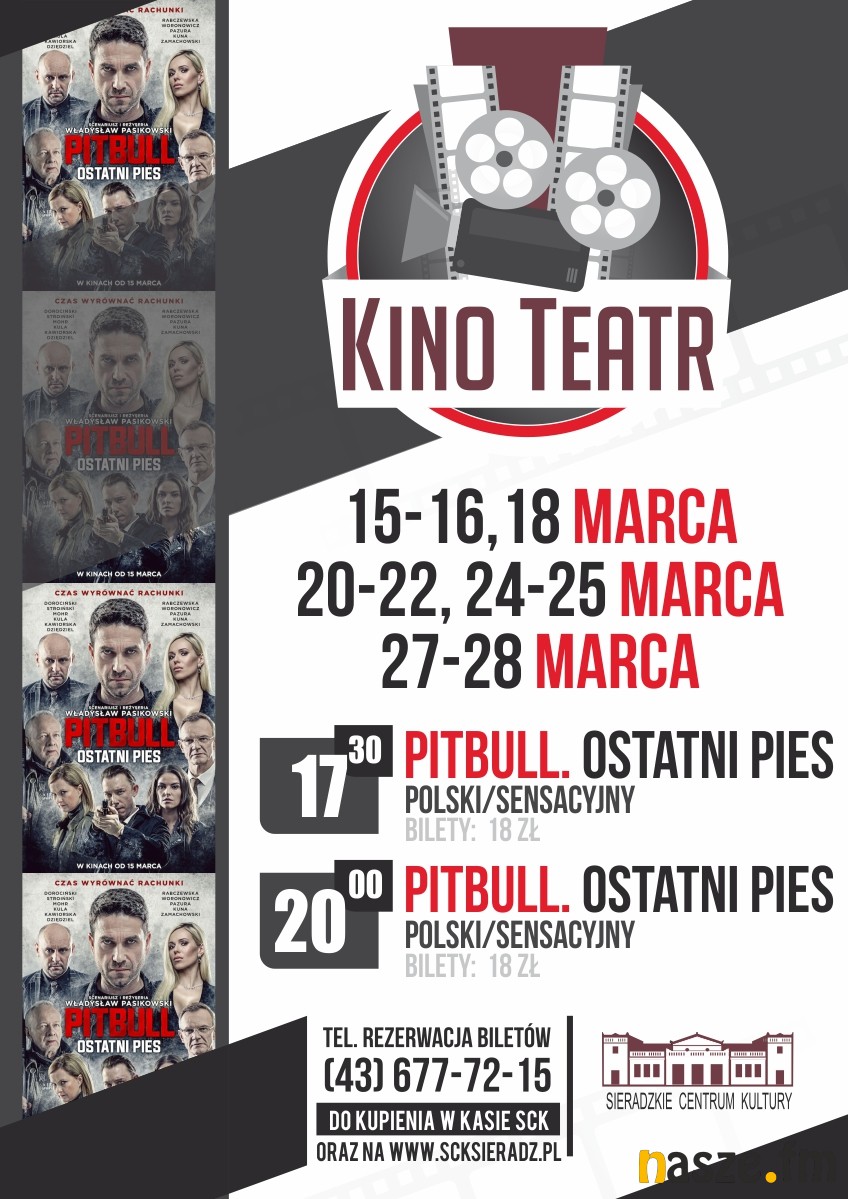 Od 15 do 28 marca w sieradzkim Kinie Teatr będzie można obejrzeć najnowszy film Władysława Pasikowskiego: "Pitbull. Ostatni pies". Dokładne daty seansów znajdziecie na plakatach.