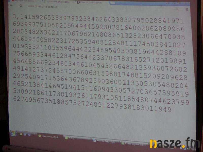 Dziś w II Liceum Ogólnokształcącym im. Stefana Żeromskiego w Sieradzu świętowano "Dzień liczby π". Z tej okazji uczniowie wraz z nauczycielami przygotowali wiele atrakcji, wśród nich konkurs na rozwinięcie ludolfiny.