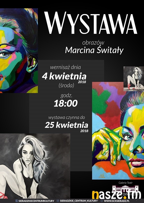 W środę 4 kwietnia Sieradzkie Centrum Kultury zaprasza na otwarcie wystawy prac artysty ze Złoczewa. Marcin Świtała swoją twórczość malarską traktuje jako hobby i sposób wyrażania swoich emocji. Początek wernisażu o godz. 18:00