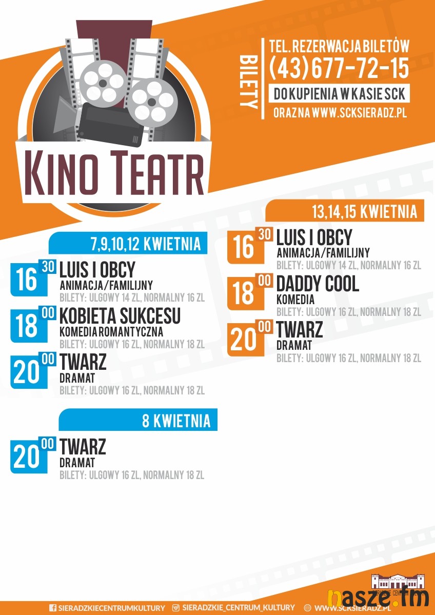 Daty i godziny seansów zaplanowane na kwiecień w Sieradzkim Centrum Kultury: