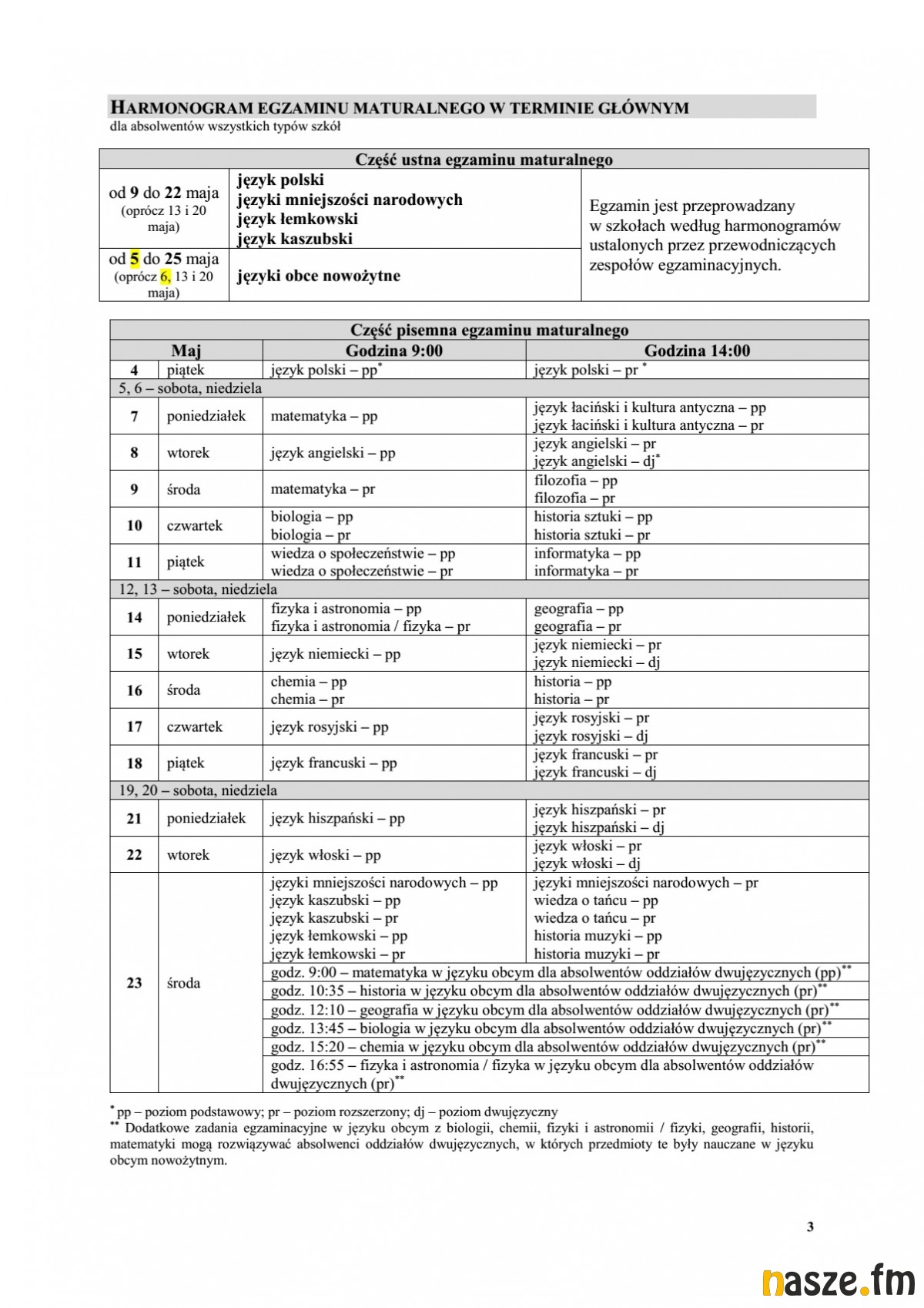 Poniżej harmonogram tegorocznych matur.