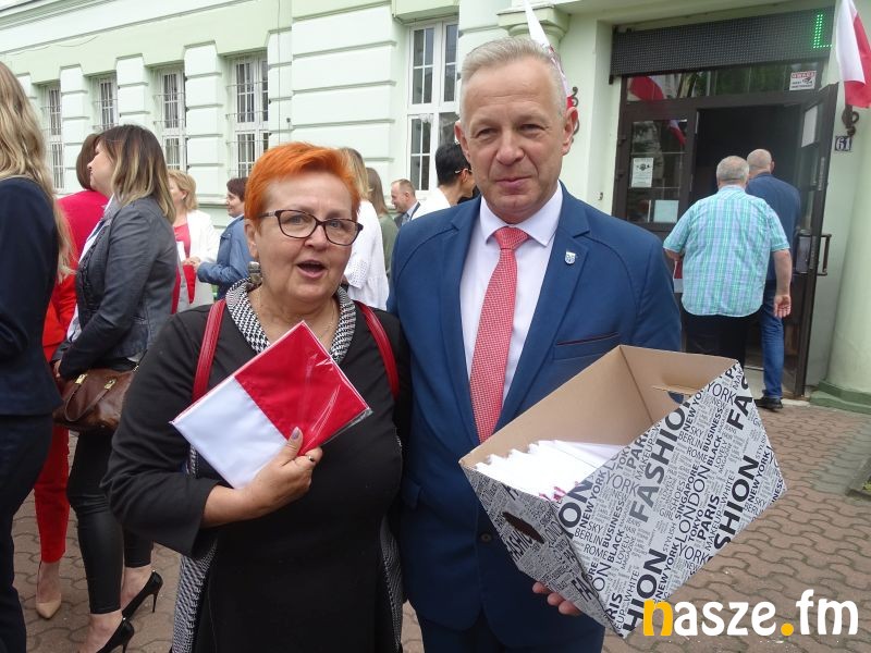 W Zduńskiej Woli zaakcentowano dziś (02.05) Dzień Flagi Rzeczpospolitej Polskiej. Obchody odbyły się przez Zespołem Szkół Elektronicznych.