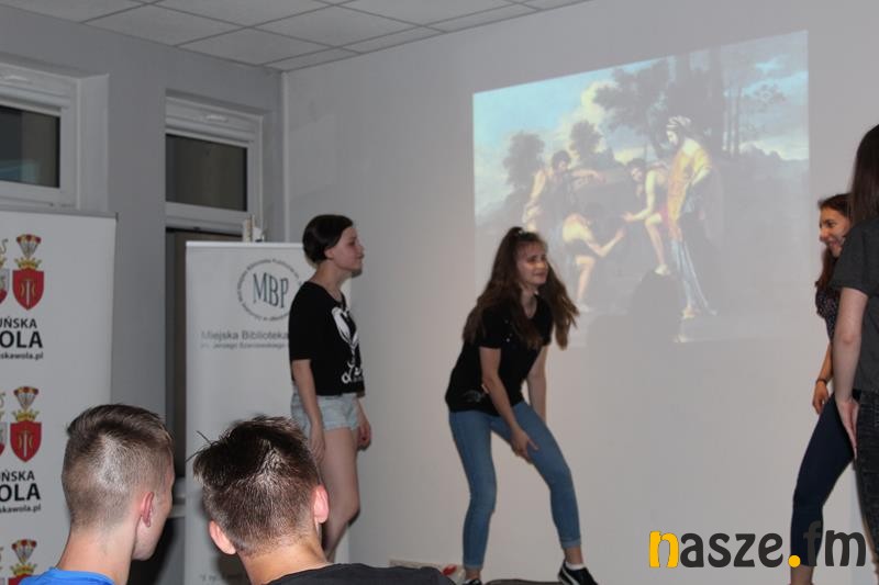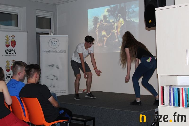 Po spotkaniu autorskim odbyły się zajęcia, których formuła oparta była na improwizacjach teatralnych uczestników na zadane tematy. Po części integracyjnej oraz typowo teatralnej rozgrzewce ciała i wyobraźni, uczestnicy stworzyli własne etiudy. Towarzyszyły im, moderując ich poczynania Anna Stefaniak i Justyna Oleksy, instruktorka teatralna, aktorka, twórczyni autorskich warsztatów i spektakli. W wydarzeniu udział wzięli uczniowie szkół średnich i gimnazjów z terenu miasta