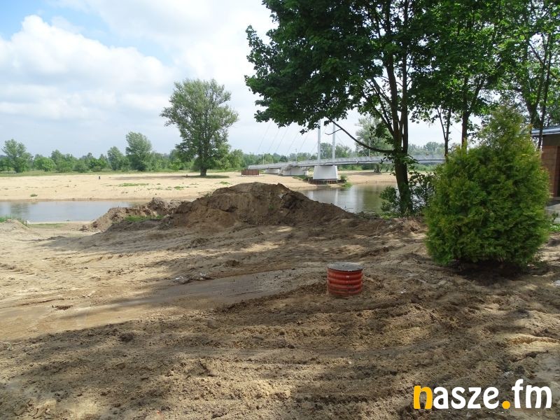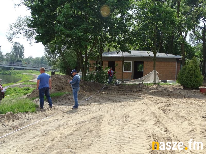 Nad sieradzką rzeką Wartą trwają prace przy ukształtowaniu terenu i instalacyjne w trzech budynkach - niecki basenowe są już prawie gotowe.