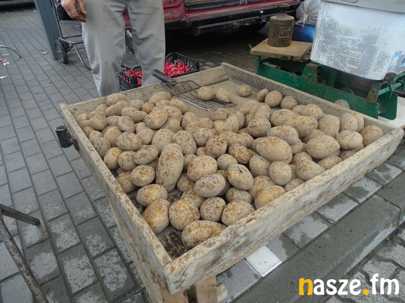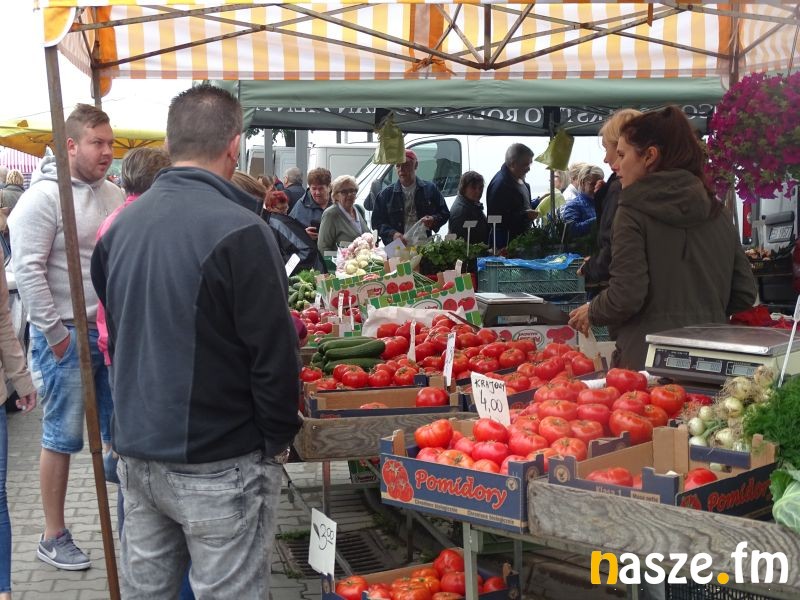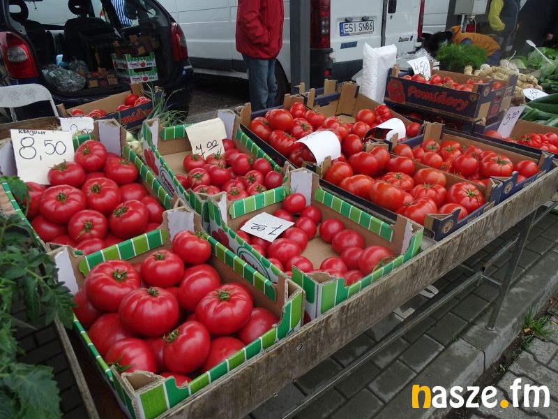 Za kilogram pomidorów malinowych na tym stoisku trzeba było zapłacić 7 zł. Na targu mieszkańcy regionu pojawiają się wcześnie rano, wszystko po to, żeby zakupić świeży i jak twierdzą, sprawdzony towar.