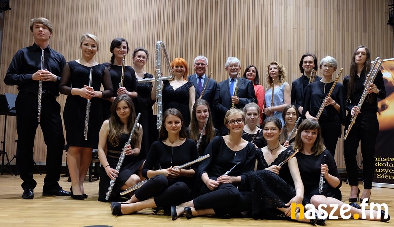 - Jako pierwszy wystąpił Carlos Bruneel, który wykonał Sonatę a – moll na flet solo Carla Philipa Emanuela Bacha. Następnie usłyszeliśmy duety fletowe - Antoni Wierzbiński z Eweliną Zawiślak, Carlos Bruneel z Agatą Igras, Carlosa Bruneel z Eweliną Zawiślak, którym akompaniowała Agnieszka Przybylska oraz kwartet fletowy, a na koniec piętnastoosobową orkiestrę fletową. Orkiestra Fletowa Akademii Muzycznej w Łodzi przygotowana przez Ewelinę Zawiślak i Mateusza Wojtki zaprezentowała dwie części The Planets Gustava Holsta. Utwory te miały w Sieradzu swoje światowe prawykonanie. Duże zainteresowanie publiczności wzbudził flet kontrabasowy - instrument niezwykle rzadko spotykany i równie rzadko wykorzystywany w orkiestrach. Po koncercie chętni mogli spróbować swoich sił w grze na tym wyjątkowym instrumencie - relacjonuje Sławomir Cieślak, wicedyrektor PSM I st. w Sieradzu.