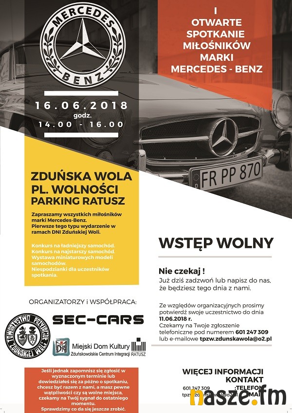 - Zapraszamy na otwarte spotkanie miłośników marki Mercedes- Benz na parkingu na placu Wolności przed ratuszem. Zjadą się ludzie, którzy miłują, pasjonują się w tym samochodzie. Zapraszamy wszystkich miłośników tej marki - zaznacza Jarosław Stulczewski, prezes Towarzystwa Przyjaciół Zduńskiej Woli, które jest głównym organizatorem wydarzenia.