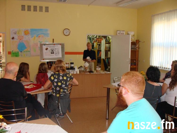 Kolejnym punktem imprezy przeznaczonym dla nieco starszej widowni, była prezentacja Alternatywnych metod parzenia kawy w teorii i praktyce. Bibliotekę odwiedziła baristka kawiarni i palarni kawy, która opowiedziała zebranym czym jest kawa, co wpływa na jej smak i jak prawidłowo parzyć czarny napar. Prelekcji towarzyszyła degustacja różnych gatunków kawy. To wydarzenie stanowiło niewątpliwie główną atrakcję wieczoru, na którą przybyło najwięcej gości.