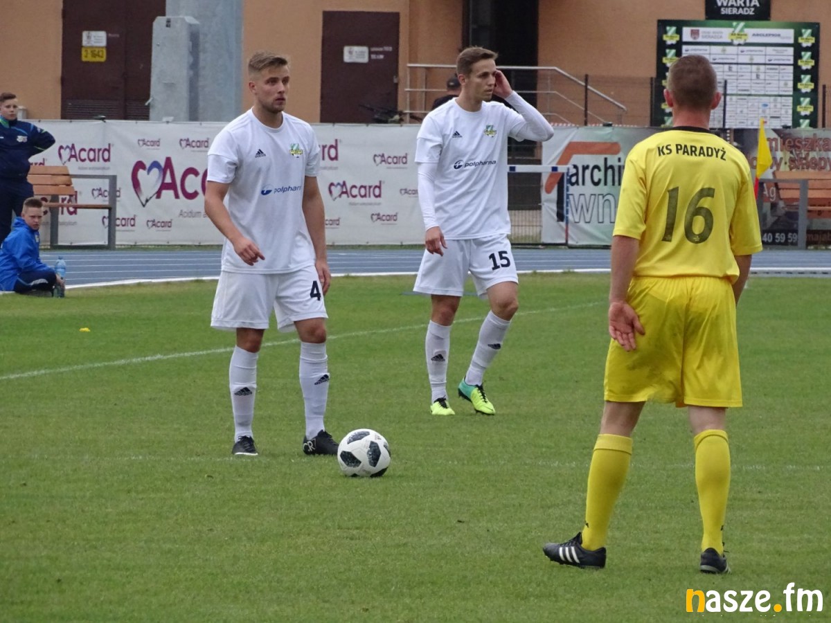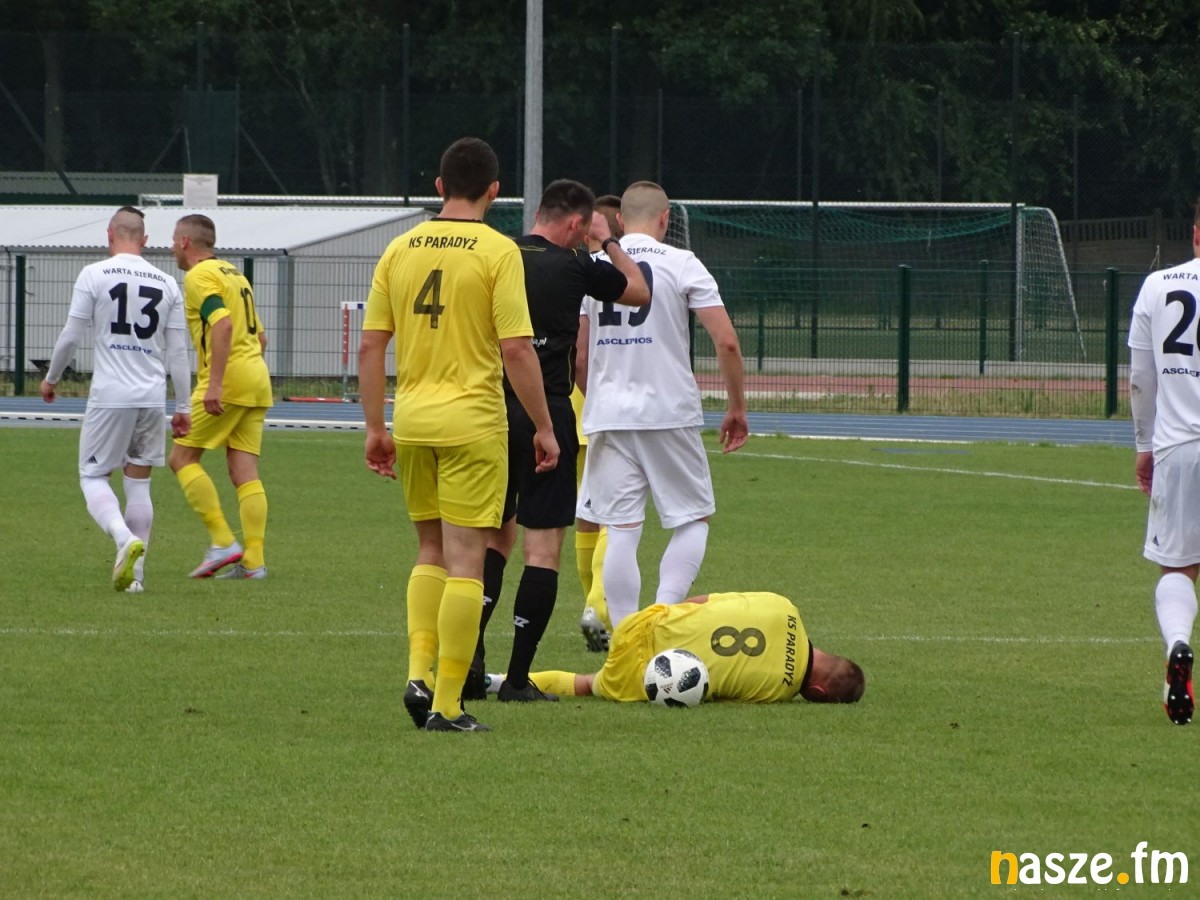 Pojedynkiem z szóstą drużyną IV ligi piłkarze Warty kończyli nieudany dla siebie sezon 2017/2018, w którym nie zdołali utrzymać się w III lidze. Puchar Polski mógł jednak - choć częściowo - zatrzeć niekorzystne wrażenie, jakie na pewno pozostawią po sobie piłkarze biało-zielonych. Boisko szybko jednak zweryfikowało Wartę, jako papierowego faworyta tego spotkania. To goście sprawiali wrażenie drużyny, której bardziej zależało na zwycięstwie. Sieradzanie w pierwszej połowie stworzyli sobie tylko jedną groźną sytuację, w której znalazł się Marcin Kobierski, niestety strzał kapitana gospodarzy w 21. minucie obronił Piotr Bukowski. Gracze z Paradyża odpowiedzieli skutecznie jeszcze przed przerwą. Najpierw groźnie strzelali w 42. minucie, kiedy piłka o centymetry minęła słupek, kilka chwil później trafili już w poprzeczkę, ale sędzia spotkania Paweł Pskit wcześniej odgwizdał zagranie ręką w polu karnym i podyktował rzut karny. Tym razem Mateusz Wlazłowski, który w tym sezonie obronił kilka jedenastek, przy uderzeniu Macieja Witczaka był bez szans i na przerwę podopieczni Dariusza Bratkowskiego schodzili przy wyniku 0:1.