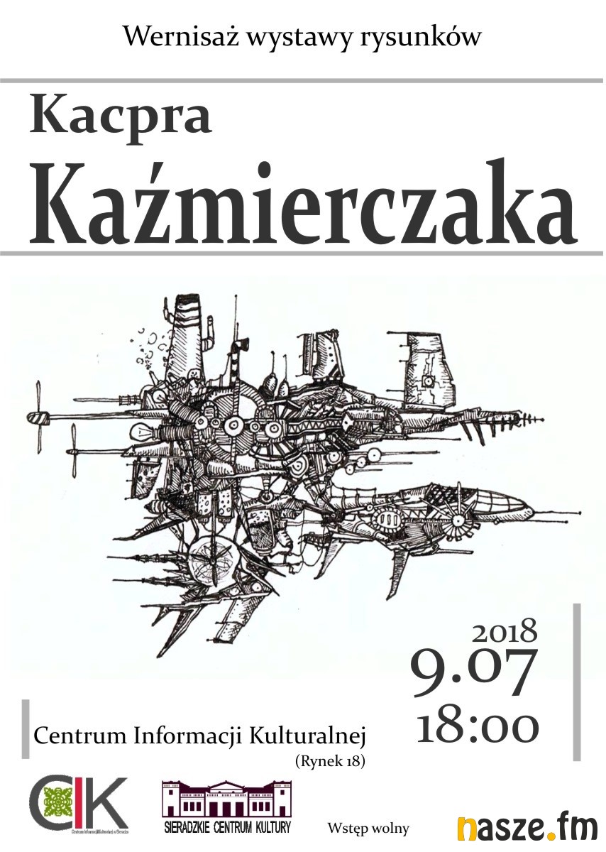 Centrum Informacji Kulturalnej w Sieradzu zaprasza na wernisaż wystawy rysunków Kacpra Kaźmierczaka. To młody, początkujący artysta, pochodzący z Kalisza. Otwarcie wystawy 9 lipca.