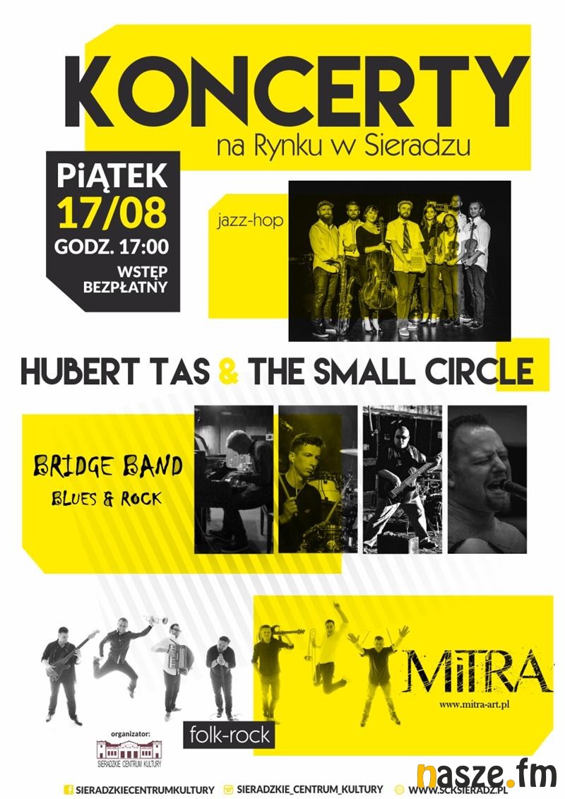 Dziś o 17 rozpocznie się koncertowy wieczór na sieradzkim Rynku. Jazz, hip - hop, rock czy folk, mieszankę tych gatunków muzycznych dostarczą zespoły Hubert Tas & The Small Circle, Bridge Band i Mitra.