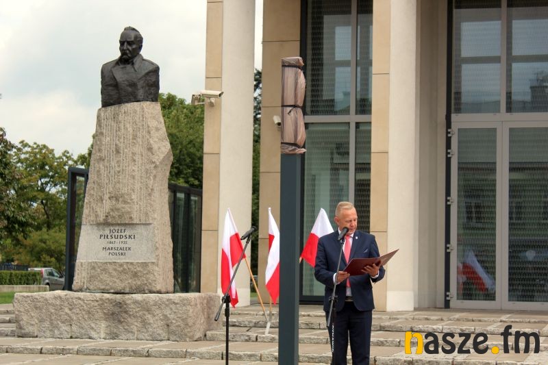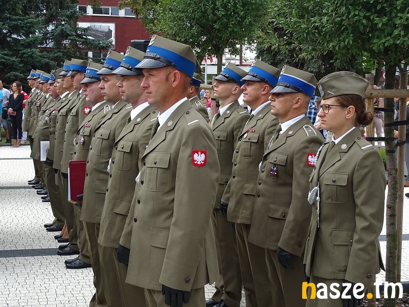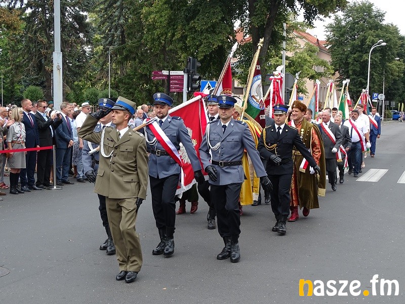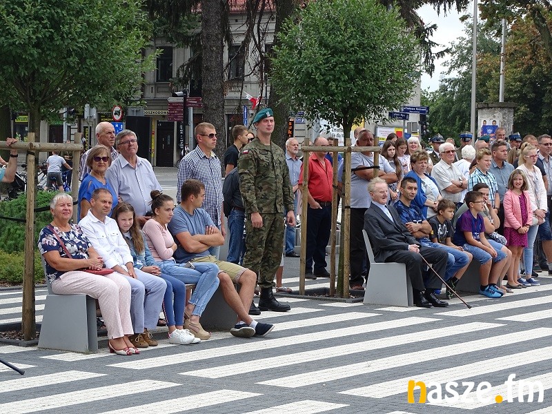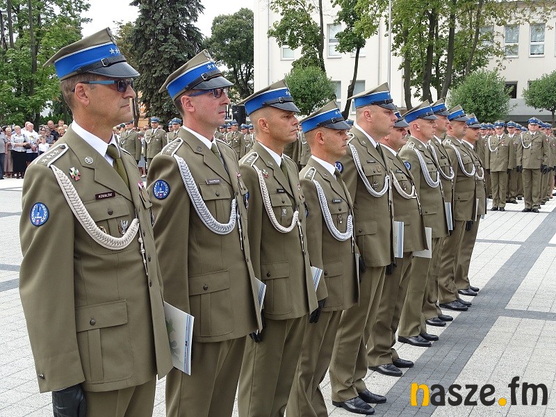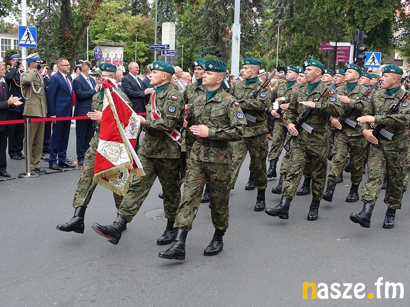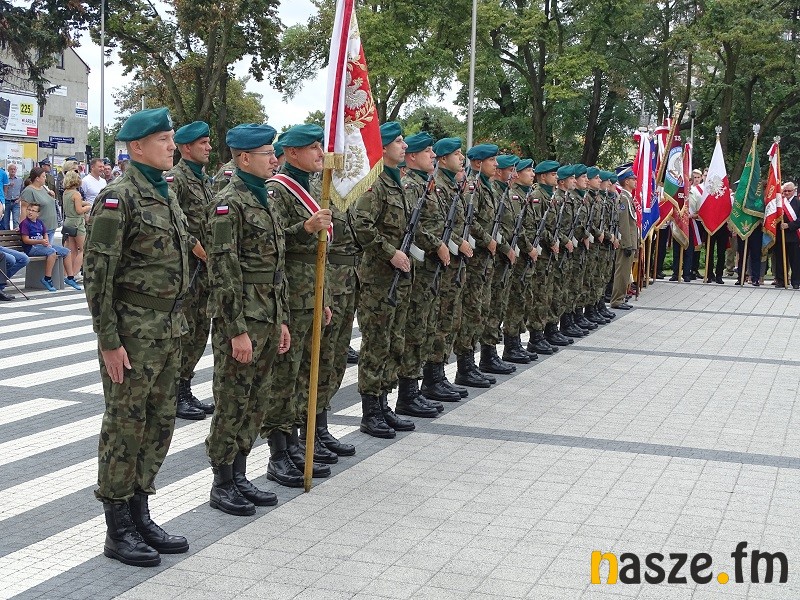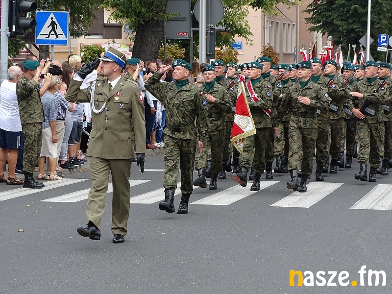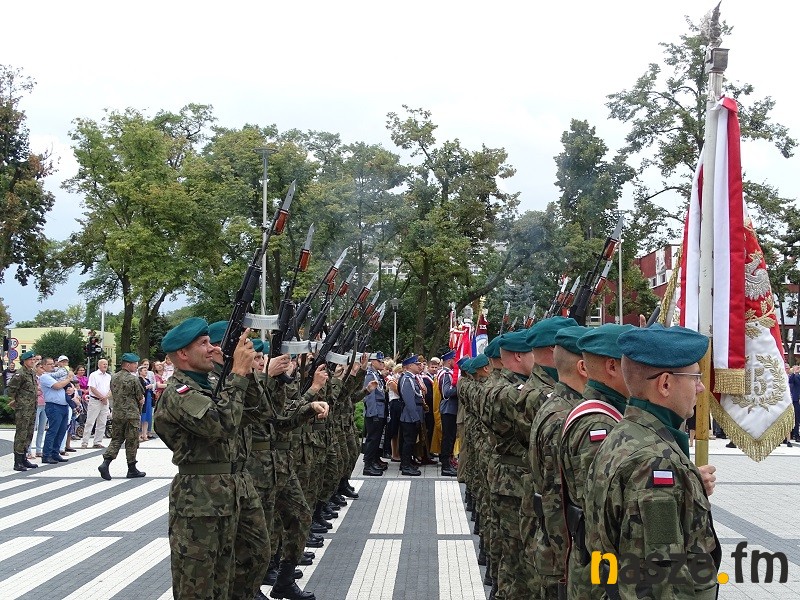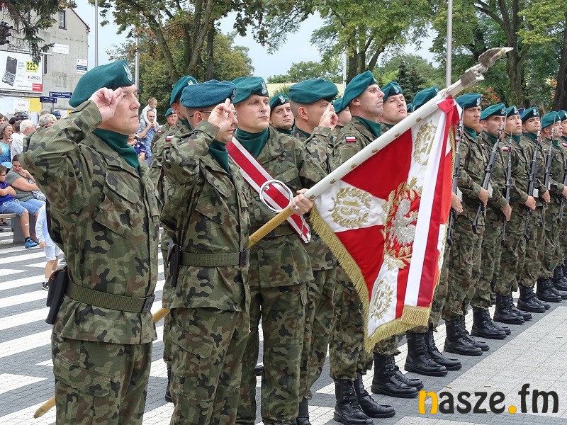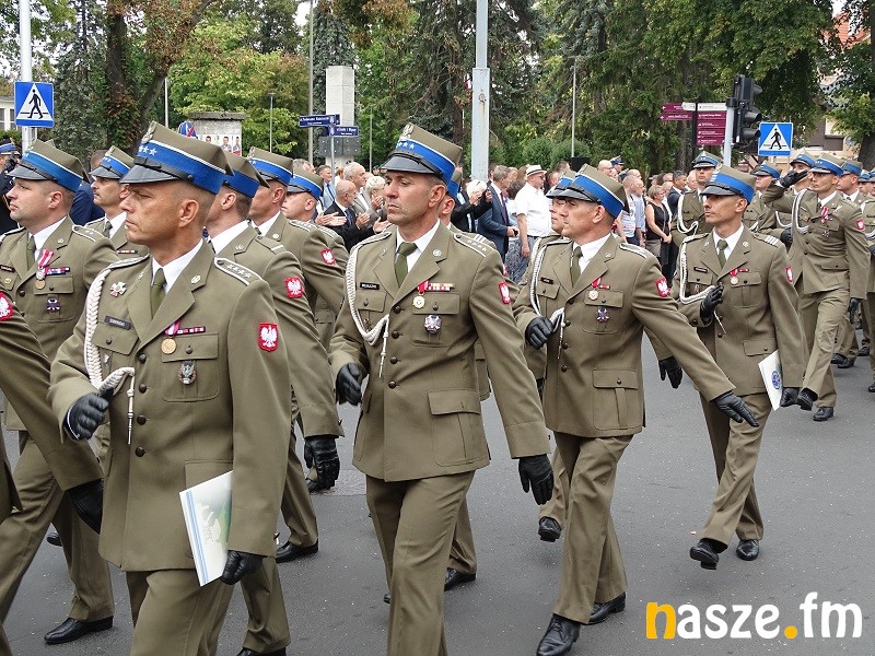 Oficjalne obchody Święta Wojska Polskiego ruszyły w południe. Po uroczystej mszy świętej w kościele garnizonowym na placu przy pomniku marszałka Józefa Piłsudskiego stanęła kompania honorowa 15 Sieradzkiej Brygady Wsparcia Dowodzenia i poczty sztandarowe.