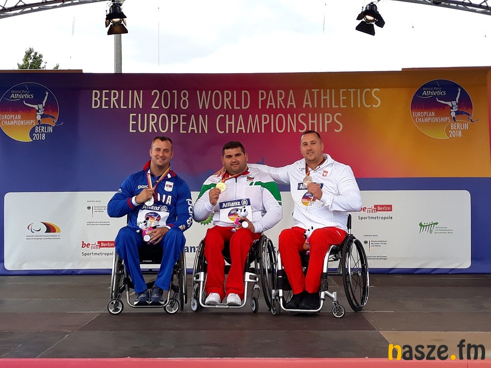 Karol Kozuń z Sieradza, zawodnik IKS START Zduńska Wola zajął trzecie miejsce w pchnięciu kulą (kat. F55), podczas Mistrzostw Europy Osób Niepełnosprawnych w Lekkoatletyce w Berlinie. To trzeci medal dla zawodników z naszego regionu. Wcześniej złoto w skoku w dal (kat. T37) wywalczyła Marta Piotrowska, a brąz w pchnięciu kulą (kat. F36) jej mąż - Paweł Piotrowski
