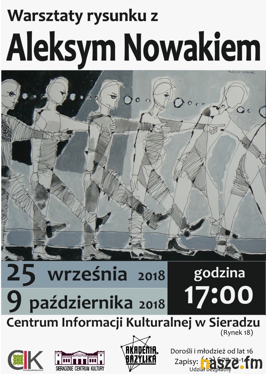 Dziś w Centrum Informacji Kulturalnej w Sieradzu odbędą się warsztaty rysunku ze znanym artystą Aleksym Nowakiem. Zajęcia przeznaczone są dla osób powyżej 16 roku życia.