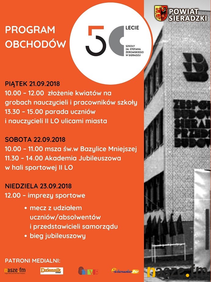 W najbliższy piątek rozpoczną się uroczystości związane z jubileuszem 50- lecia istnienia szkoły przy ulicy Żeromskiego w Sieradzu. Mija bowiem 50 lat od powstania szkoły. Nazywano ją różnie: Budowlanką, Zespołem Szkół Ponadgimnazjalnych, II liceum, "Żeromskim"-mówi Urszula Świniarska, dyrektor II Liceum Ogólnokształcącego im. Stefana Żeromskiego w Sieradzu.