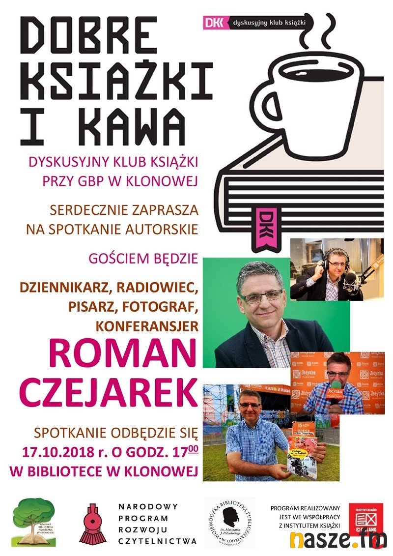 Dziś w Gminnej Bibliotece Publicznej w Klonowej odbędzie się spotkanie autorskie z dziennikarzem radiowym Romanem Czejarkiem. Spotkanie zostanie zorganizowane w ramach Dyskusyjnego Klubu Książki.