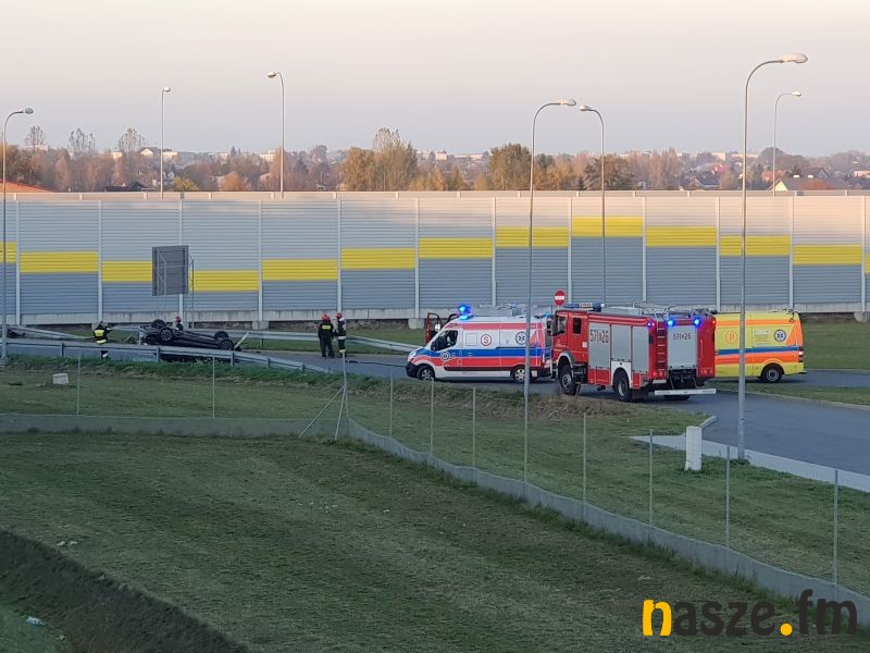 Jadący w kierunku Łodzi samochód marki Honda dachował na zjeździe MOP Paprotnia Południe w okolicach Zduńskiej Woli.