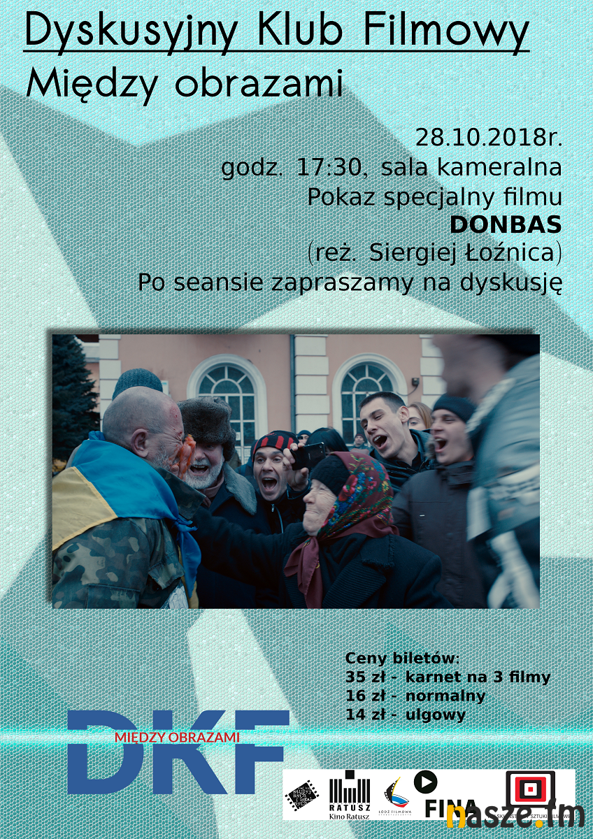 Dyskusyjny Klub Filmowy "Między obrazami" działający w Kinie Ratusz w Zduńskiej Woli zaprasza na kolejne spotkanie. W najbliższą niedzielę 28 października wyświetlany i omawiany będzie film "Donbas".