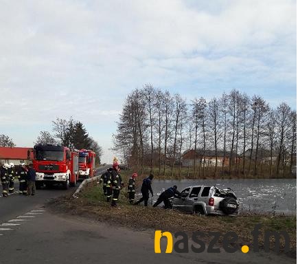 Groźne zdarzenie drogowe w gminie Błaszki. W stawie w Brończynie wylądowało auto terenowe kierowane przez młodą kobietę. Na szczęście nic się jej nie stało.