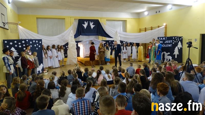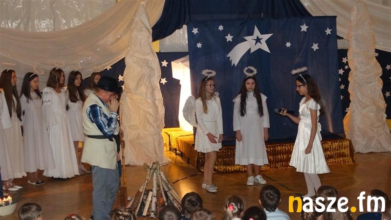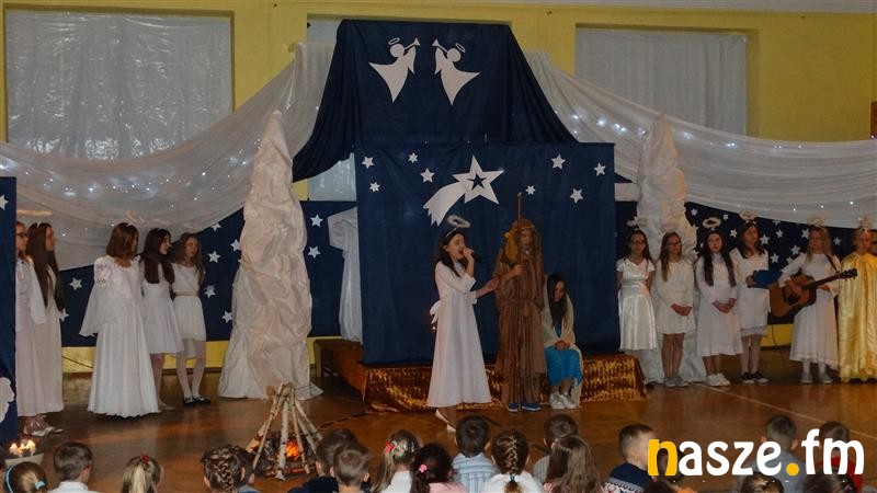 Piękna sceneria, kolędy wprowadziły wszystkich w świąteczny nastrój i przypomniały, że dzieląc się opłatkiem przekazujemy sobie znak pokoju, a święta są czasem miłości i solidarności ze wszystkimi, szczególnie zaś z tymi, którzy czują się osamotnieni. Scenki z życia nowonarodzonego dzieciątka, pasterzy, mędrców, dzieci oraz aniołów przeplatane były kolędami w wykonaniu uczniów klasy VI i VII. Po występie głos zabrała dyrektor szkoły, która złożyła wszystkim świąteczne życzenia. Wcześniej w czasie klasowych wigilii dzieci dzieliły się opłatkiem, składały sobie życzenia, rozmawiały o polskich tradycjach świątecznych i śpiewały kolędy. 28 grudnia uczniowie z przedstawieniem jasełkowym pojadą do DPS w Sieradzu, a 6 stycznia wystąpią w kościele NMP w Pyszkowie.