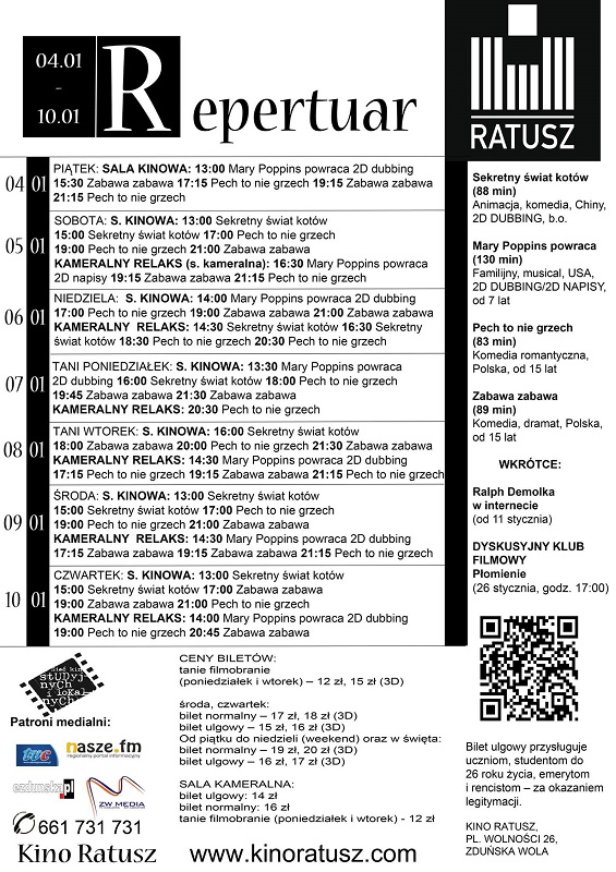 W kinach regionu czas na noworoczne premiery. Zobaczymy m.in. Agatę Kuleszę w filmie Zabawa, zabawa. Ponadto kolejna komedia Ryszarda Zatorskiego Pech to nie grzech i chińska animacja.
