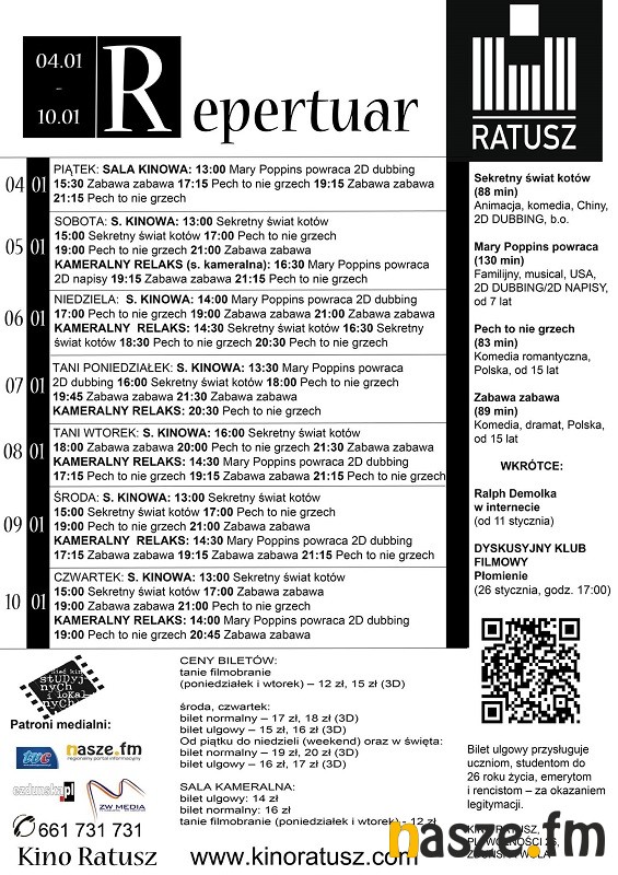 Więcej o bieżącym repertuarze kin posłuchacie w każdy wtorek o 14:15 w Radiowym Seansie Filmowym na antenie Naszego Radia.