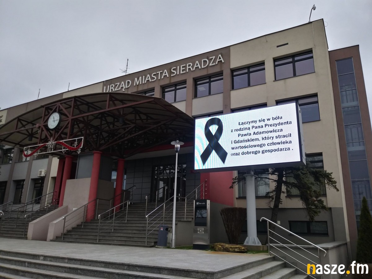 "Łączymy się w bólu z rodziną Pana Prezydenta Pawła Adamowicza i Gdańskiem, który stracił wartościowego człowieka oraz dobrego gospodarza" - takie wyrazy współczucia pojawiły się na tablicy multimedialnej przed Urzędem Miasta Sieradza. Słowa te są wyświetlane na przemian z cytatem Wisławy Szymborskiej "Ktoś tutaj był i był, a potem nagle zniknął i uporczywie go nie ma".