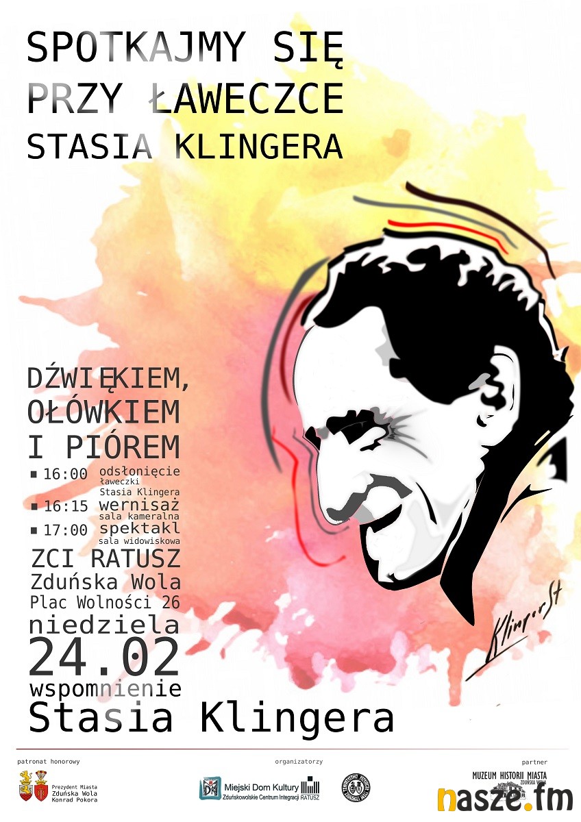 - Na 24 lutego zaplanowaliśmy oficjalne odsłonięcie ławeczki Stasia Klingera, która od kilku miesięcy stoi przed Ratuszem. Następnie zapraszamy na wystawę prac Pana Klingera, a po wernisażu odbędzie się koncert, spektakl. To będzie taki muzyczno - tekstowy benefis. Będziemy wspominać Stasia Klingera słowem, muzyką i obrazem - podkreśla Kamil Kaczmarek ze zduńskowolskiego Ratusza.