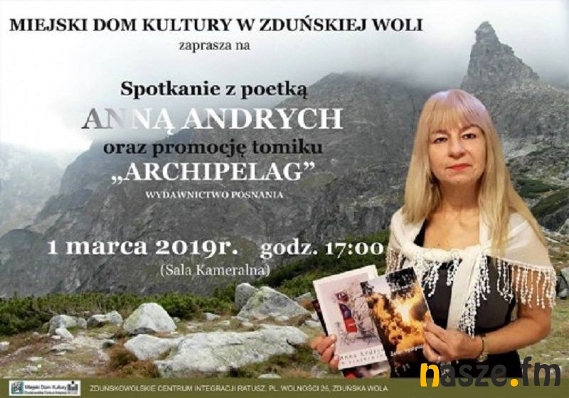 W najbliższy piątek w Zduńskowolskim Centrum Integracji – Ratusz odbędzie spotkanie z poetką Anną Andrych połączone z promocją jej tomiku "Archipelag".