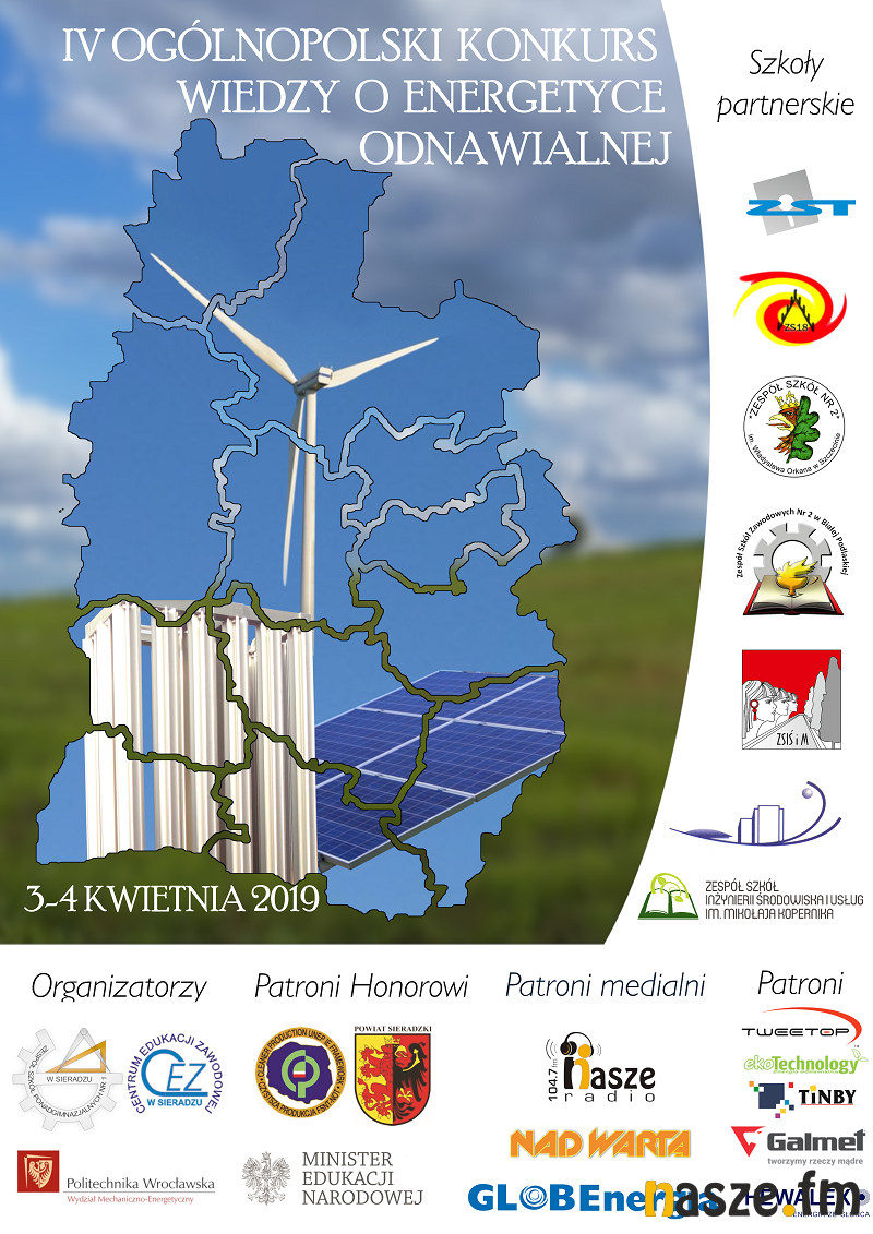 Zakończyły się etapy szkolne IV Ogólnopolskiego Konkursu Wiedzy o Energetyce Odnawialnej, który jest organizowany przez Zespół Szkół Ponadgimnazjalnych Nr 1 w Sieradzu wraz z Wydziałem Mechaniczno-Energetycznym Politechniki Wrocławskie. Kto będzie reprezentował Sieradz w kolejnym etapie?