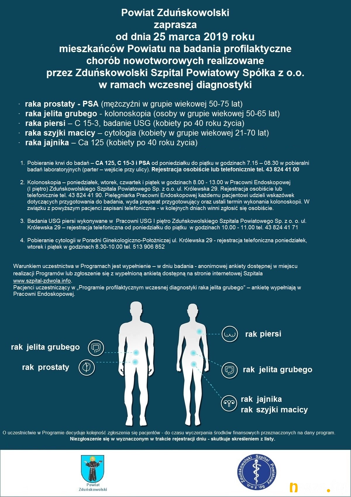 Badania realizowane są przez Zduńskowolski Szpital Powiatowy w ramach wczesnej diagnostyki: